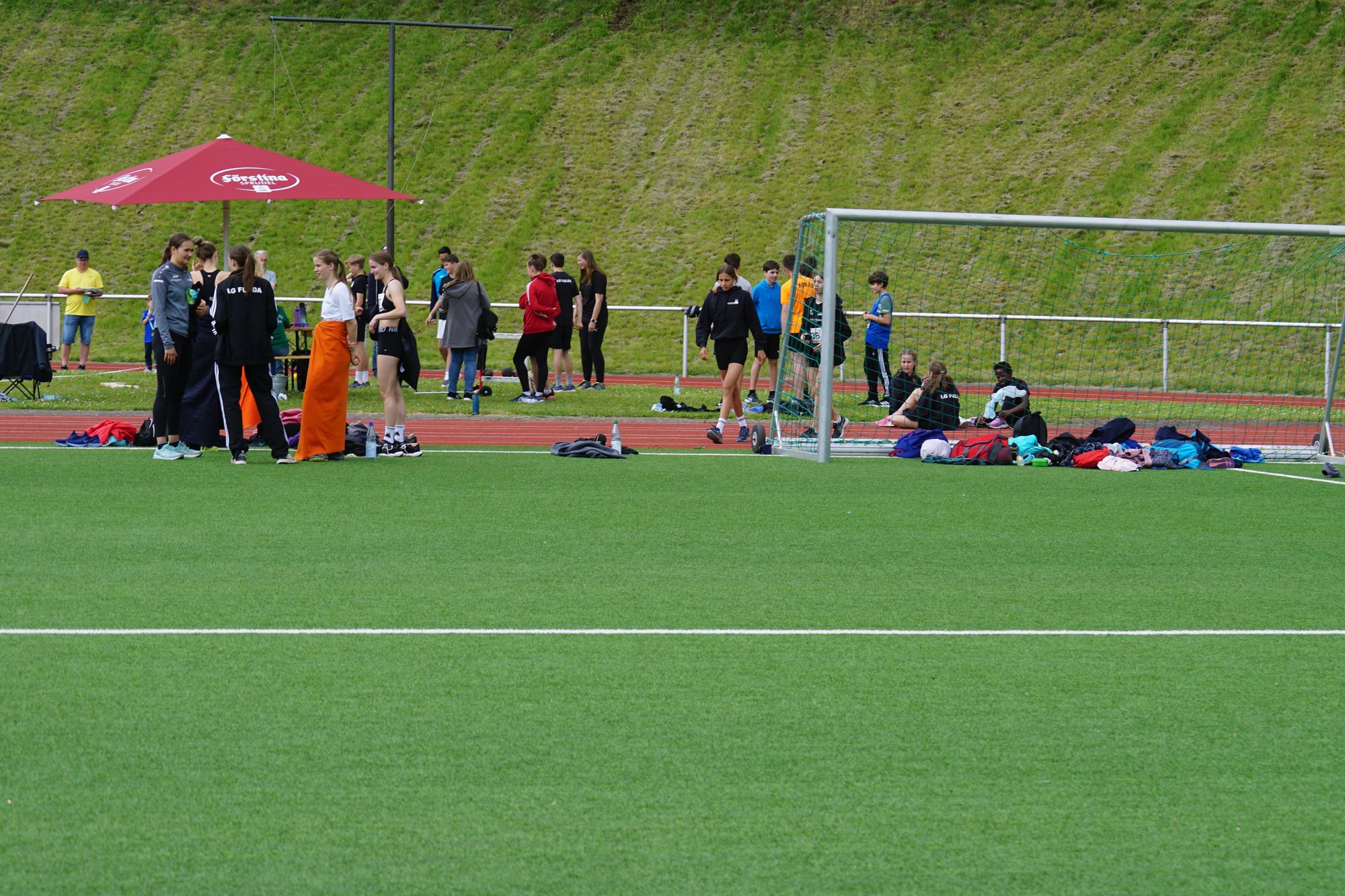 Nach der Staffel – bei dem Rennen haben auch schon viele zugesehen – geht es dann so richtig los. In der KiLa sind 34 Mannschaften (7 x U8, 15 x U10, 12 x U12) zwei mehr als im vergangenen Jahr an den Start gegangen. Los ging es um 09:30 Uhr mit der KiLa U12, die KiLa U8 folgte nur 30 Minuten später und nach dem Mittag war dann die KiLa U10 dran. Daneben dann noch die angebotenen Disziplinen der klassischen Leichtathletik (Weitsprung, Kugelstoßen, Speerwurf, Ballwurf, Hürden, Sprint, Mittelstrecke, …); es war einiges zu sehen.