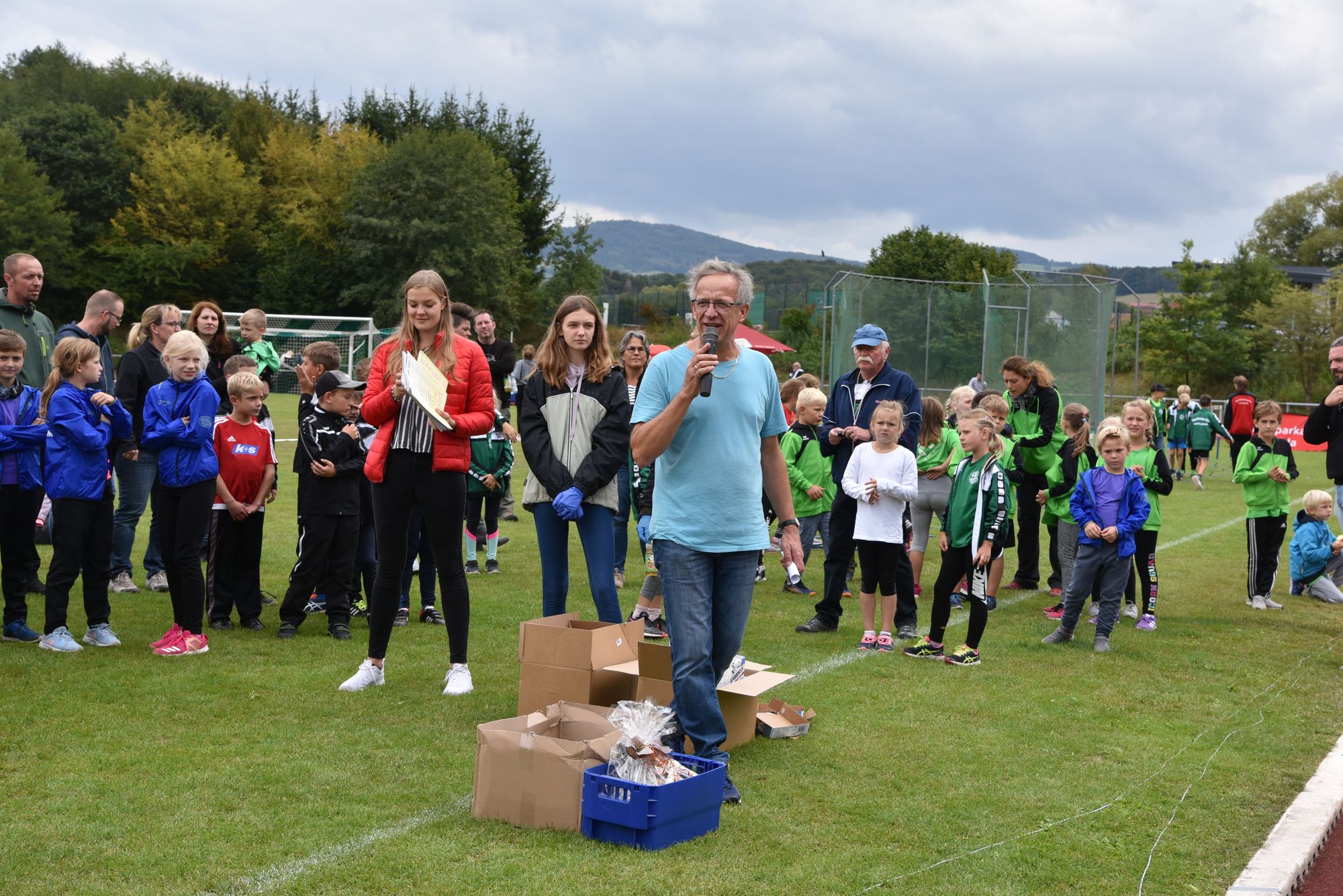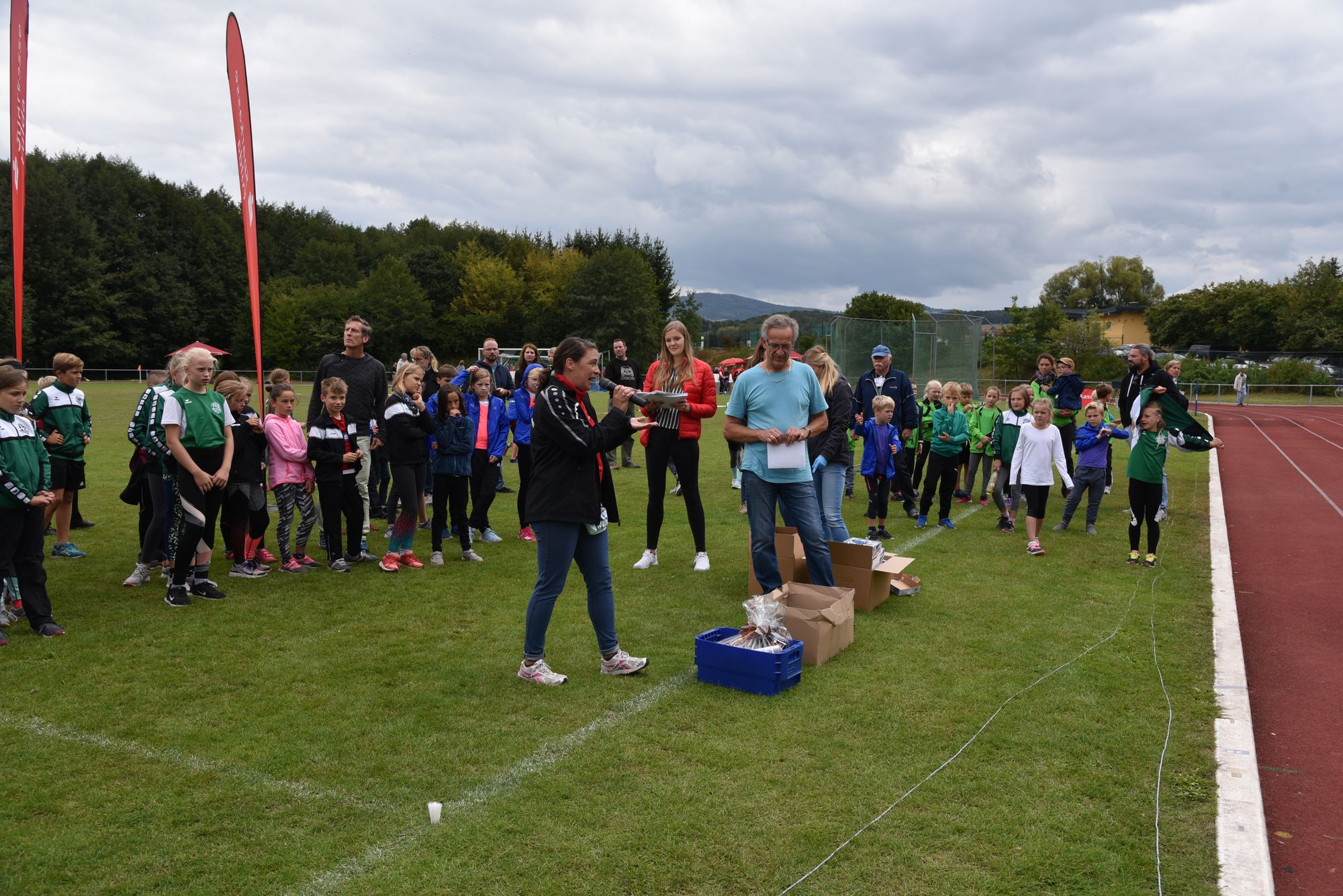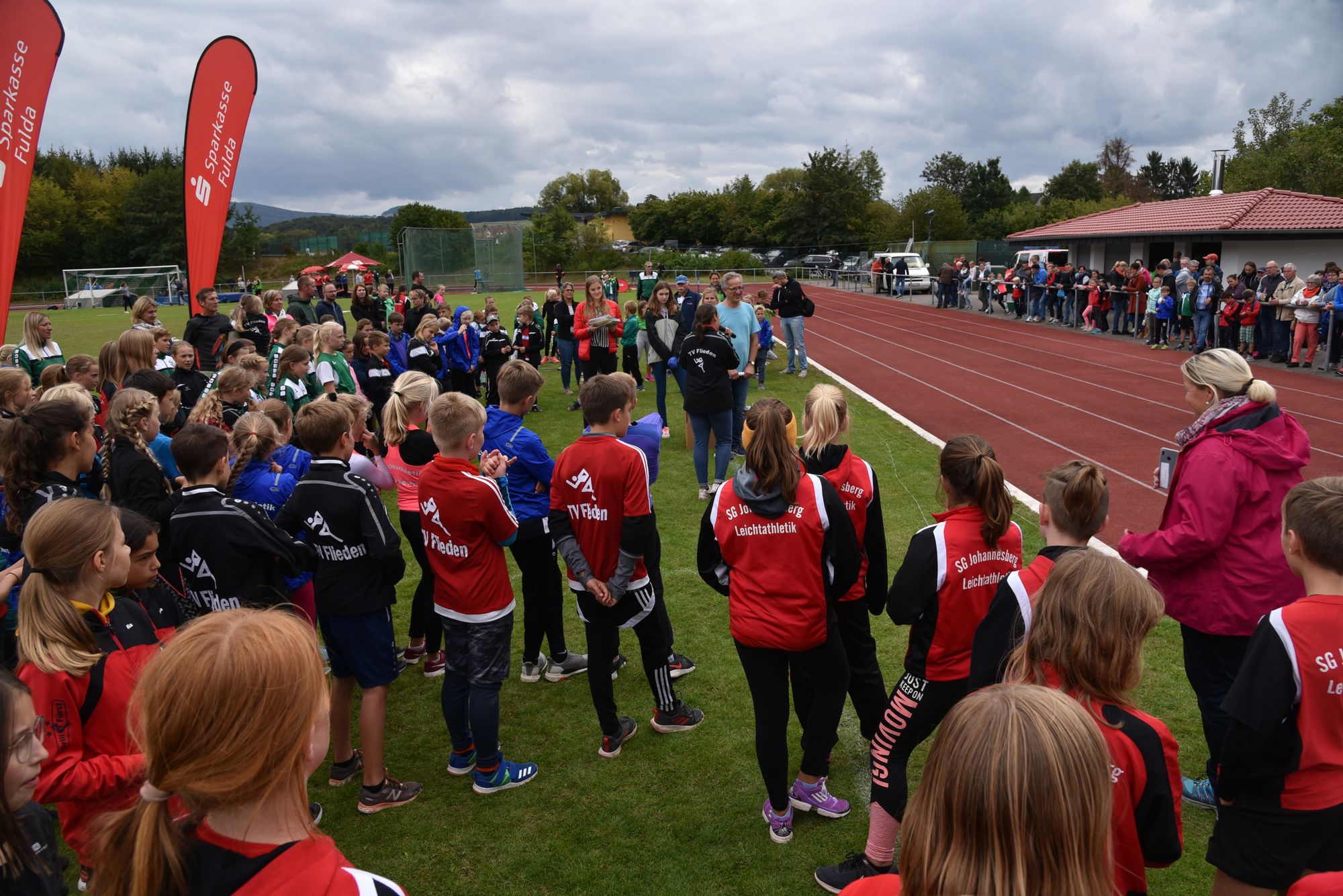 Insgesamt 350 Starter konnte Wettkampfleiter Klaus-Dieter Vogler begrüßen, zudem erhielt der Dipperzer Bürgermeister für seine langjährige Tätigkeit als Vorsitzender des Leichtathletik-Kreises Fulda-Hünfeld von Nachfolgerin Ramona Sitzmann einen Präsentkorb. Sportlich fehlten in Dipperz allerdings die herausragenden Leistungen.