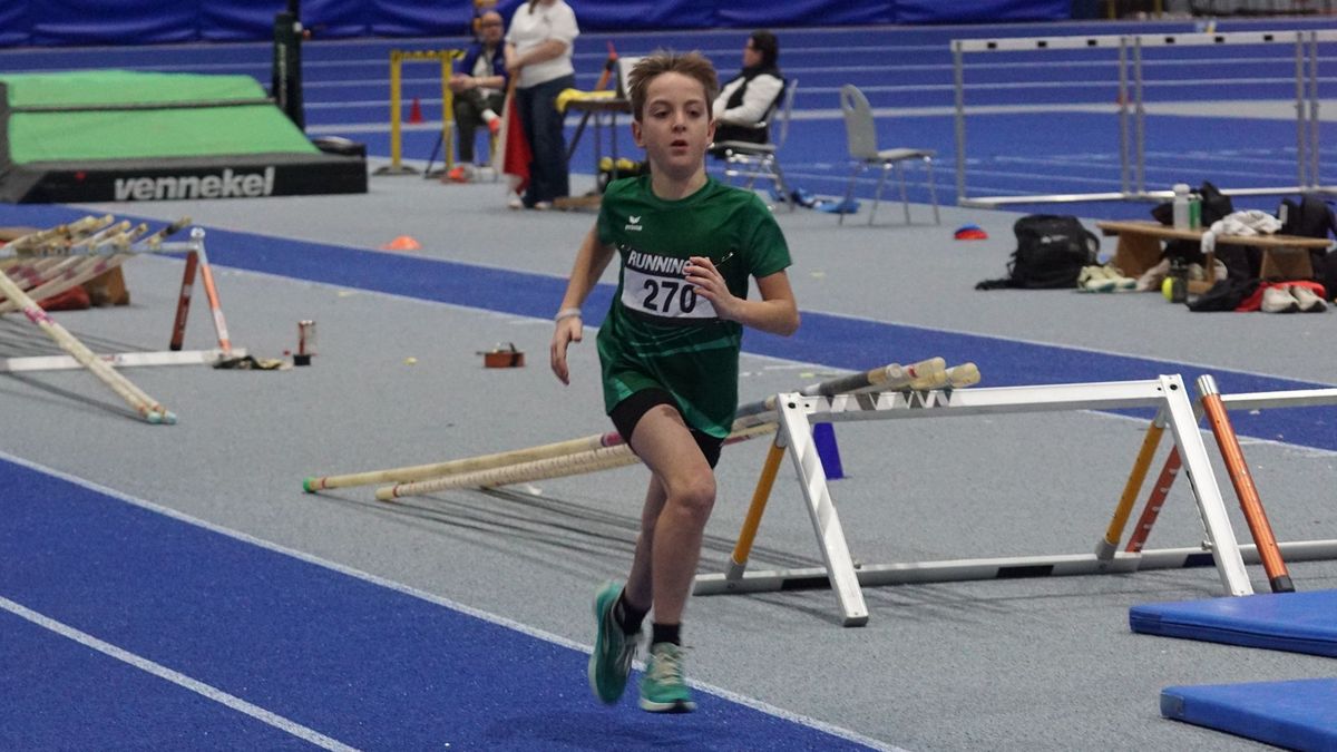 Parallel fand in der Halle auch ein Stabhochsprungwettbewerb statt. Und hier konnten die 7 auch erstmals so richtige TOP-Athleten ganz nah beim Stabhochsprung verfolgen. Das Ausrufezeichen setzte hier Amadeus Gräber mit übersprungenen 5,15 Meter. Amadeus ist u.a. zweifacher U20-Europameister, Deutscher Hallenmeister bei den Männern im Siebenkampf, …! Im Fernsehen sehen, oder direkt neben der Anlage stehen, wenn solche Höhen übersprungen werden, ist schon was ganz anderes!