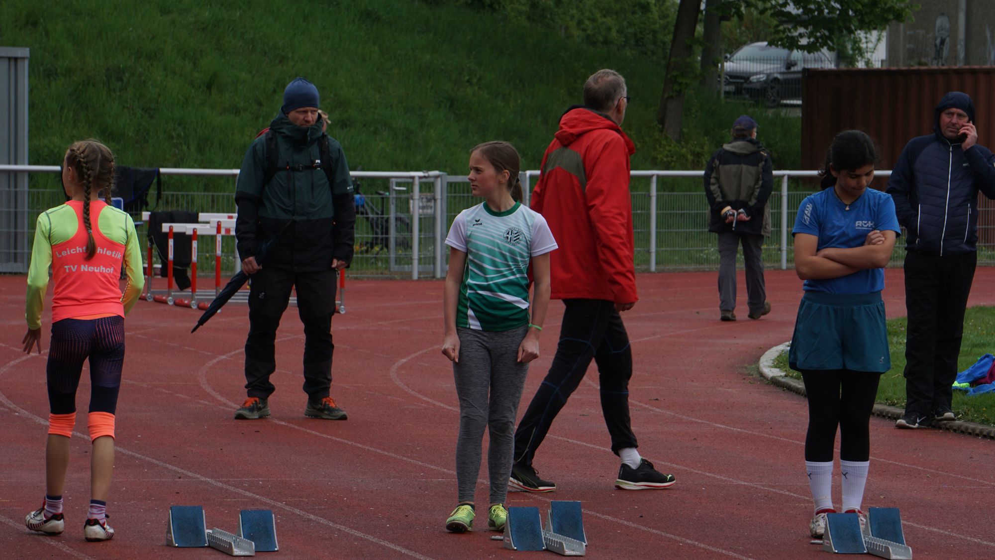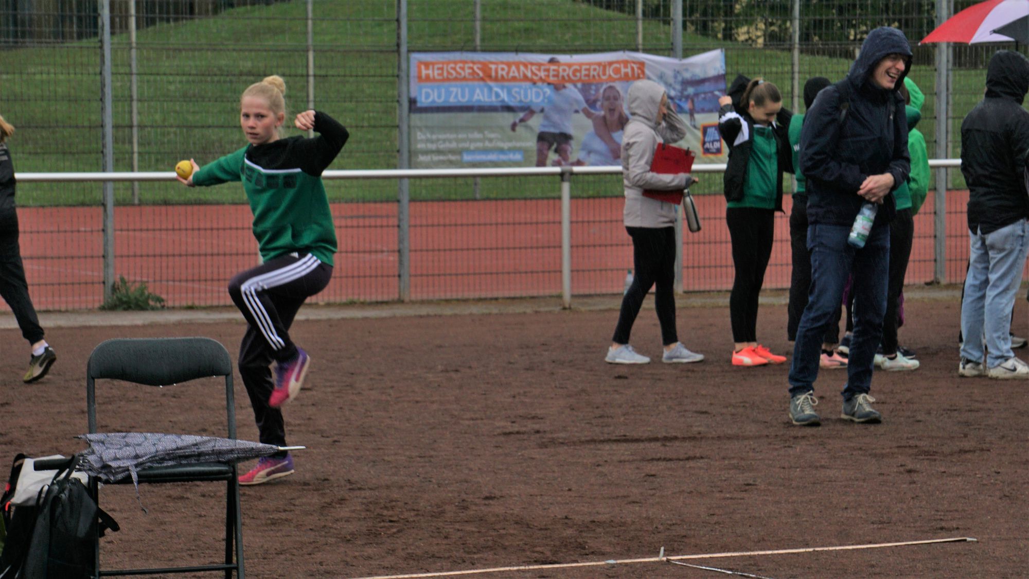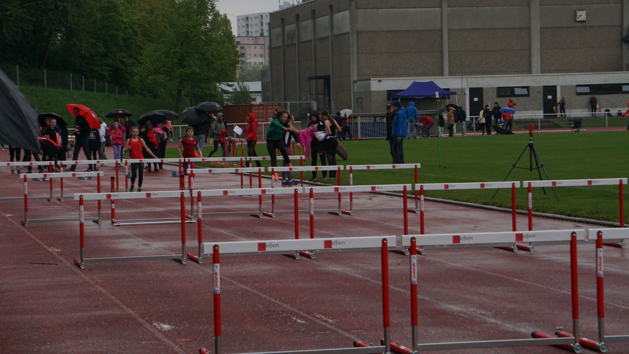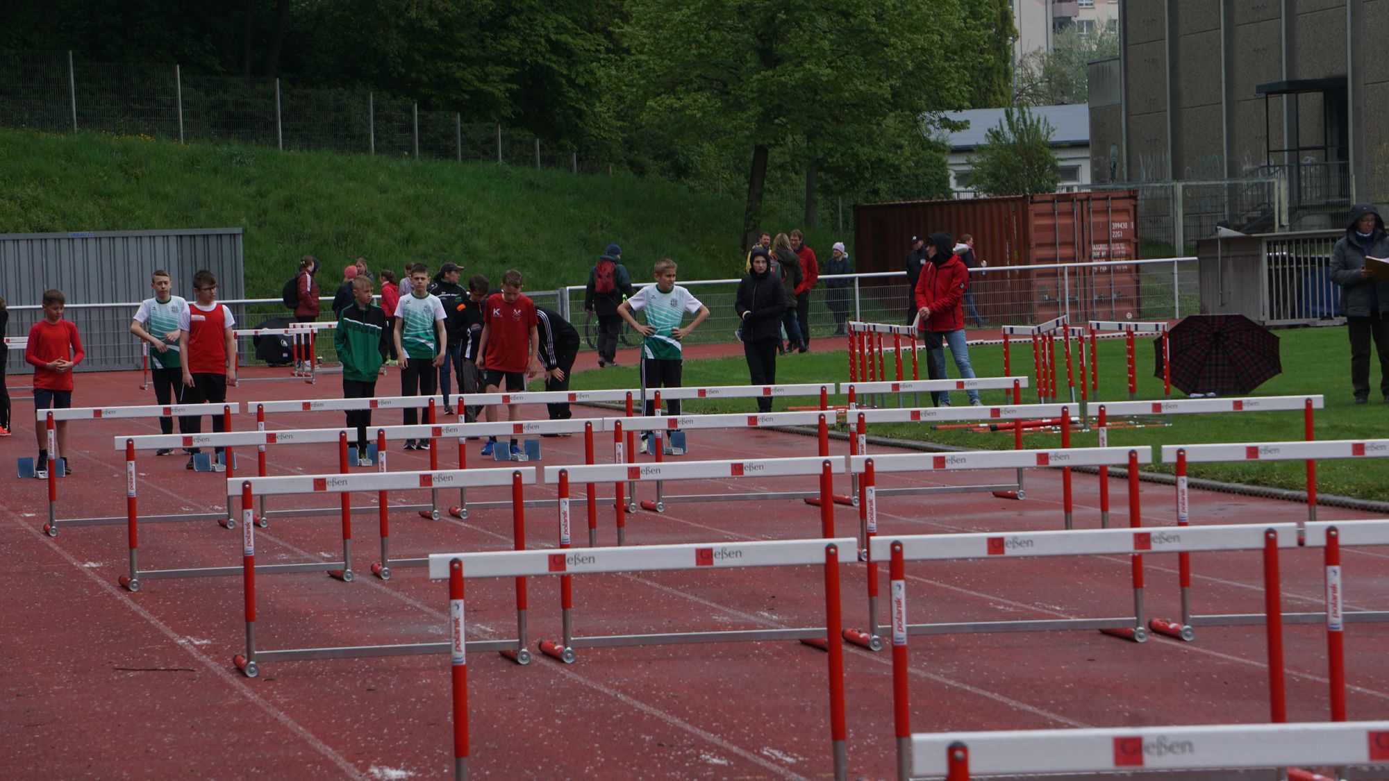 Und was war das für ein Wettkampf, bis zum frühen Nachmittag schüttete es wie aus Kübeln, alle waren pitschenass bis auf die Knochen. Nur mal als Beispiel der Hochsprung: Man springt über die Latte und landet auf der Hochsprungmatte die voller Wasser ist. Fühlt sich an als würde man in einer Pfütze landen! Es gibt schöneres!