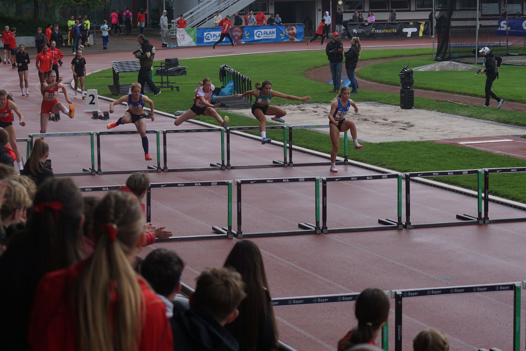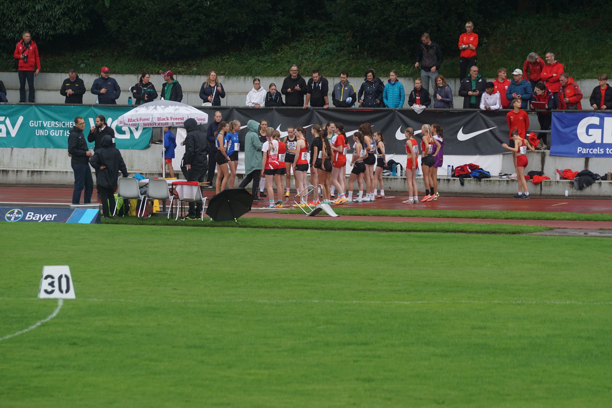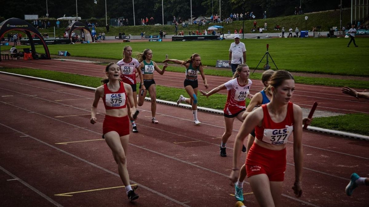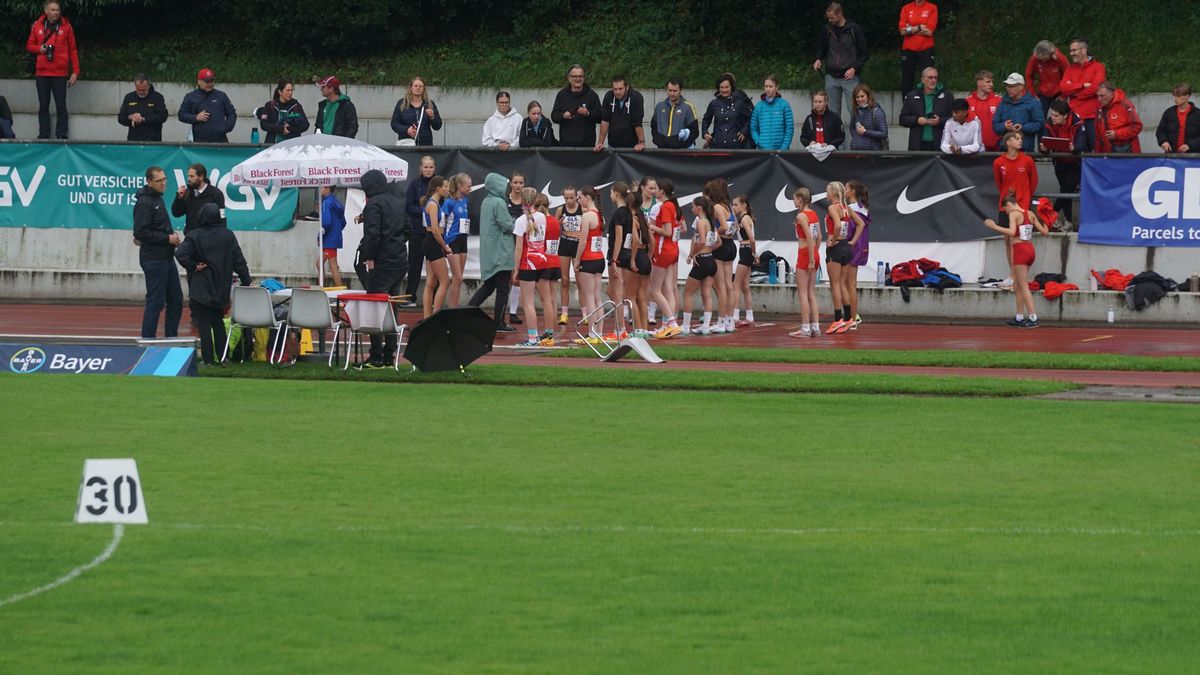 Die abschließende 4x100m-Staffel muss die Entscheidung bringen. Der Startschuss fällt. Die erste Staffel in der Besetzung Nika Marie Henkel, Lotte Schwarz, Svea Witzel und Emma Röhrdanz mit Platz 2; die zweite Staffel in der Besetzung Malia Bohl, Frieda Auerbach, Lotta Roth und Lawen Maiello auf Platz 9.