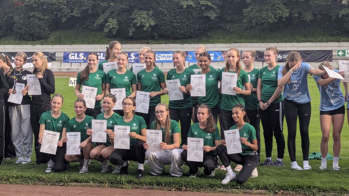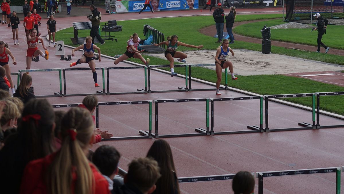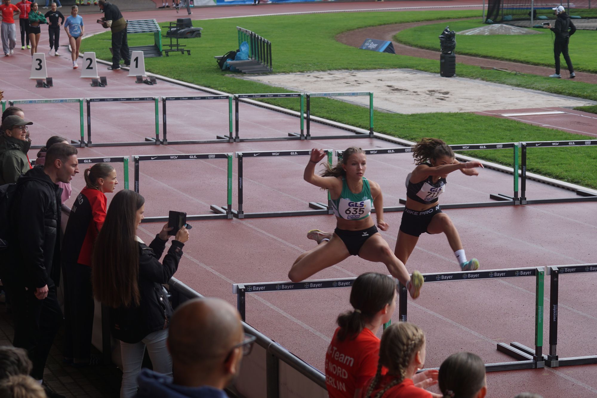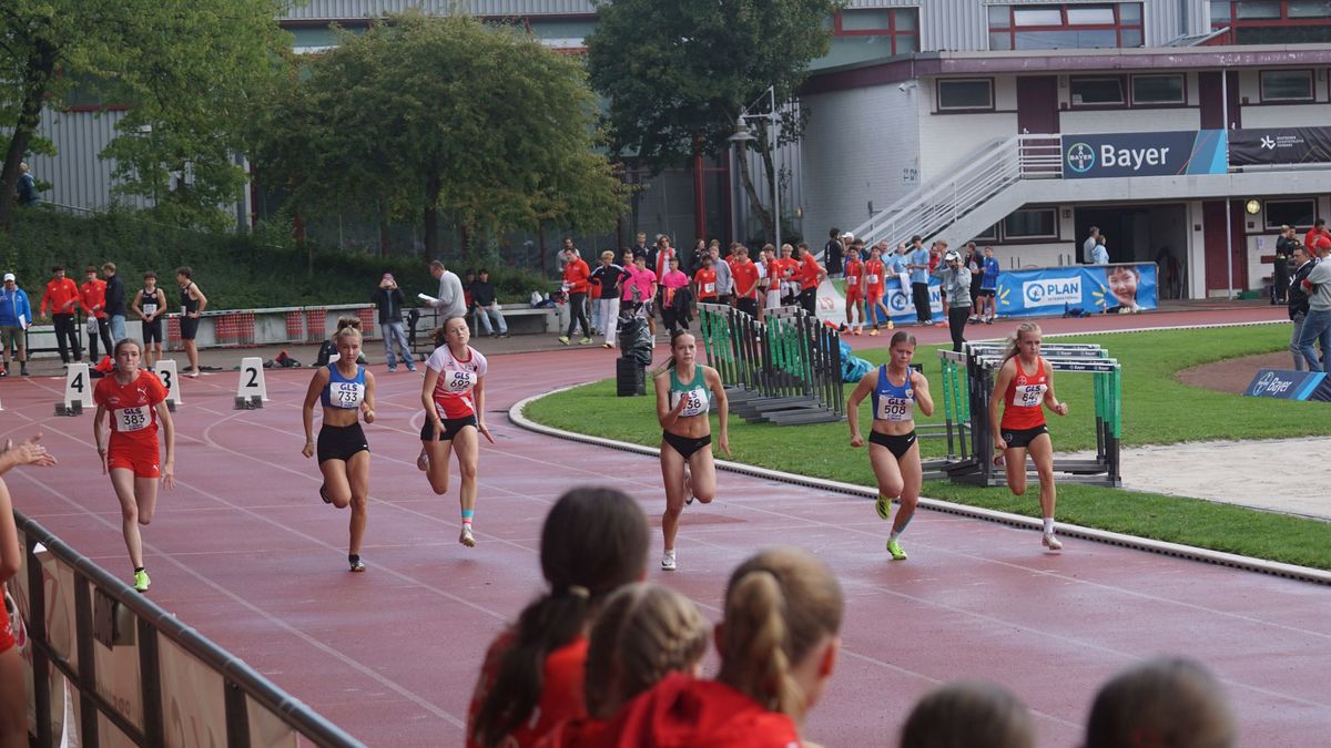 Die abschließende 4x100m-Staffel muss die Entscheidung bringen. Der Startschuss fällt. Die erste Staffel in der Besetzung Nika Marie Henkel, Lotte Schwarz, Svea Witzel und Emma Röhrdanz mit Platz 2; die zweite Staffel in der Besetzung Malia Bohl, Frieda Auerbach, Lotta Roth und Lawen Maiello auf Platz 9.