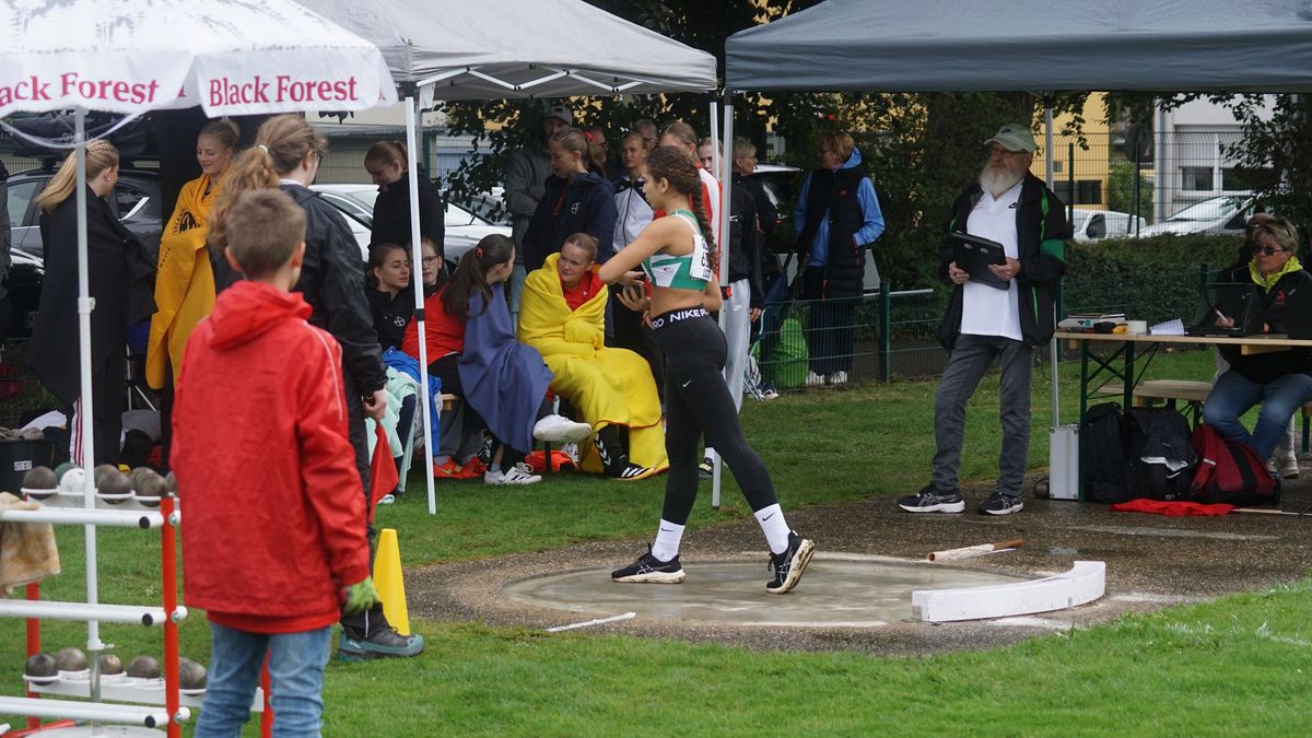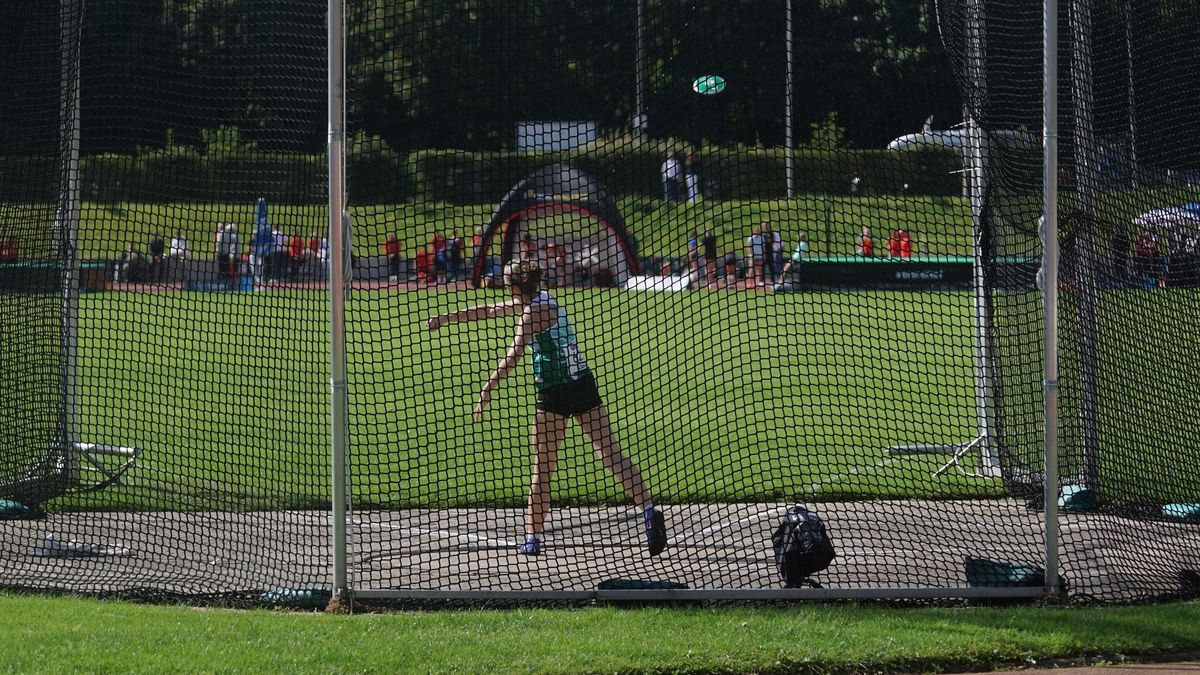 Als nächstes wird der Diskuswurf fertig, eigentlich der Hochsprung, aber der Zeitplan ist, wie auch im letzten Jahr, etwas durcheinandergeraten! Lena Dehler, Marielle Beckmann und Mara Gutermuth auf den Plätzen 4, 12 und 15. In der Gesamtwertung wir weiter auf Platz 4! Lena und Mara mit neuen Bestleistungen, 29,05m bzw. 24,50m