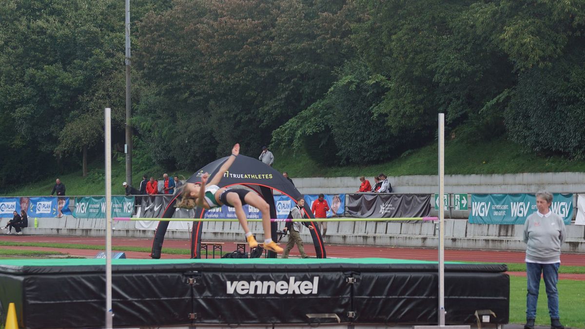 Nun der Hochsprung. Amelie Witzel, Emma Röhrdanz und Lia Maja Laudt mit den Plätzen 2, 8 und 13. Emma und Lia aber mit der gleichen Höhe und der gleichen Punktzahl, den Platzierungsunterschied machen die Fehlversuche aus. In der Gesamtwertung nun auf Platz 3. Amelie wieder auf ihrer Bestleistungshöhe von 1,65m.