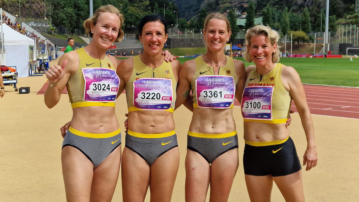 2 mal Gold mit der 4 x 100 m und 4 x 400 m mixed-Staffel, einmal Silber mit der 4x400m Staffel für Dana Prada (LG OVAG Friedberg-Fauerbach) in der W45 und einmal Bronze in der 4 x 100 m Staffel für Miriam Feyerabend (TV Groß-Gerau) in der W50.