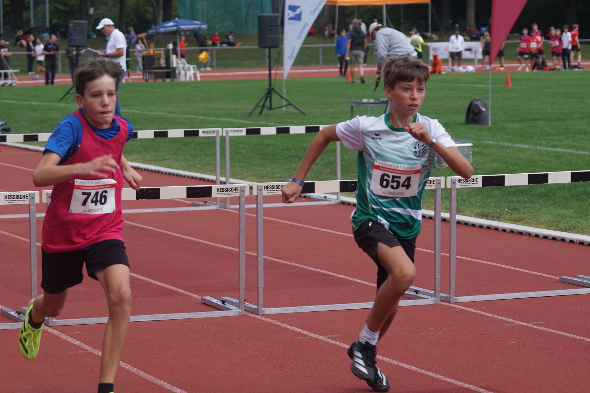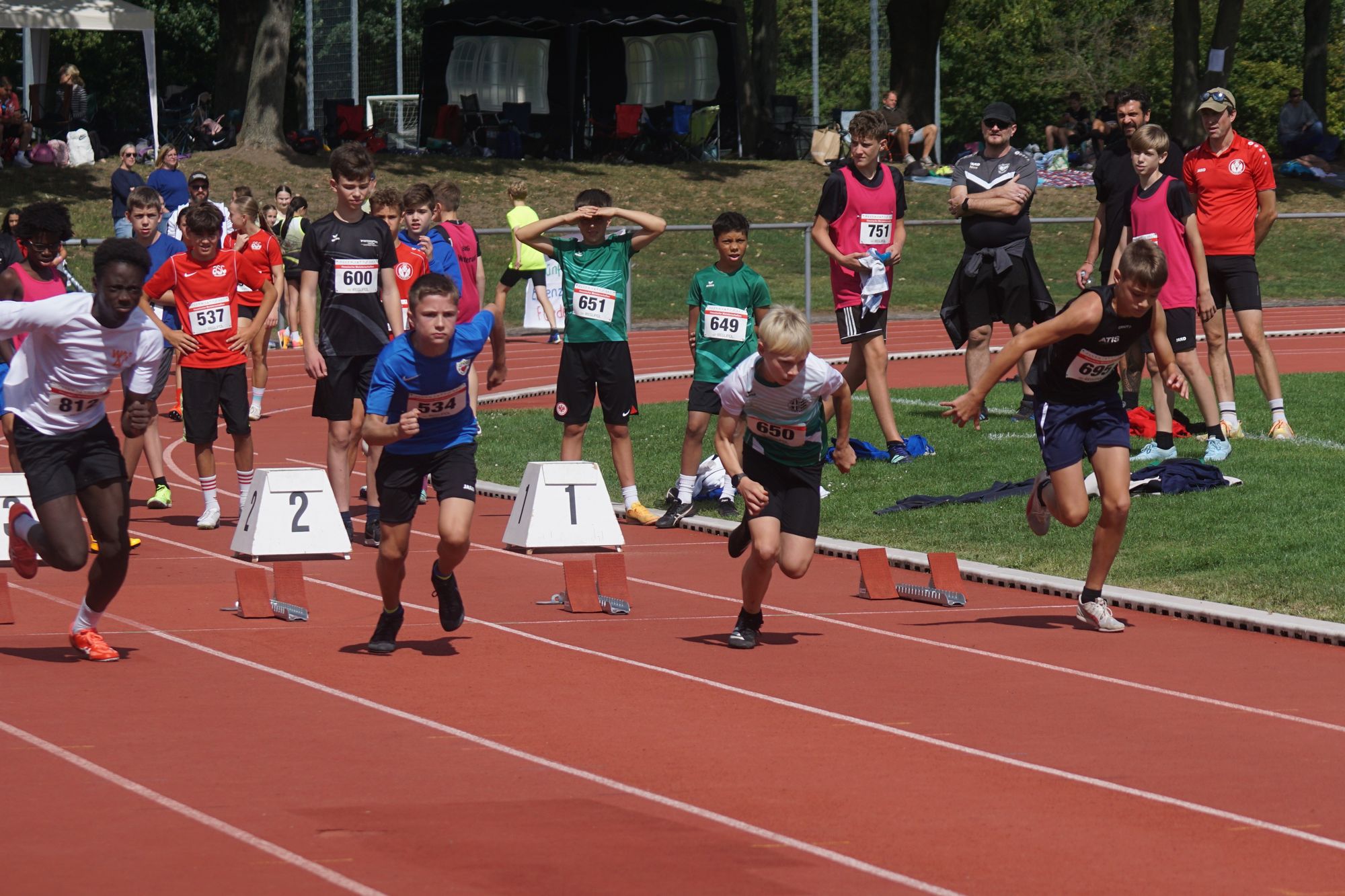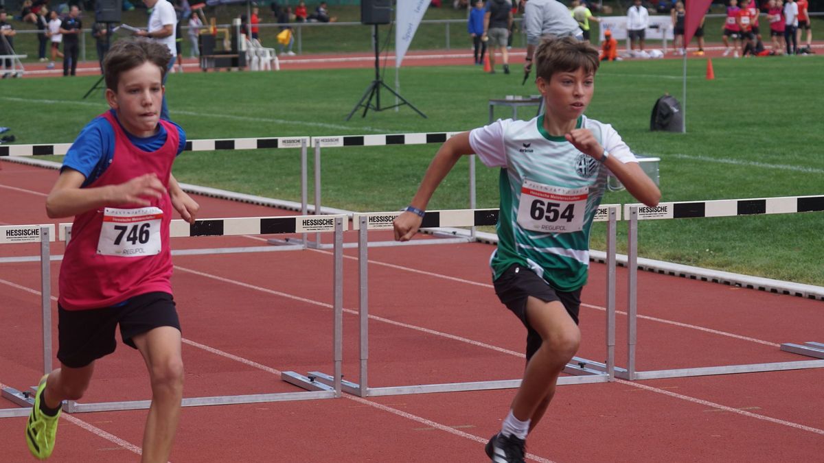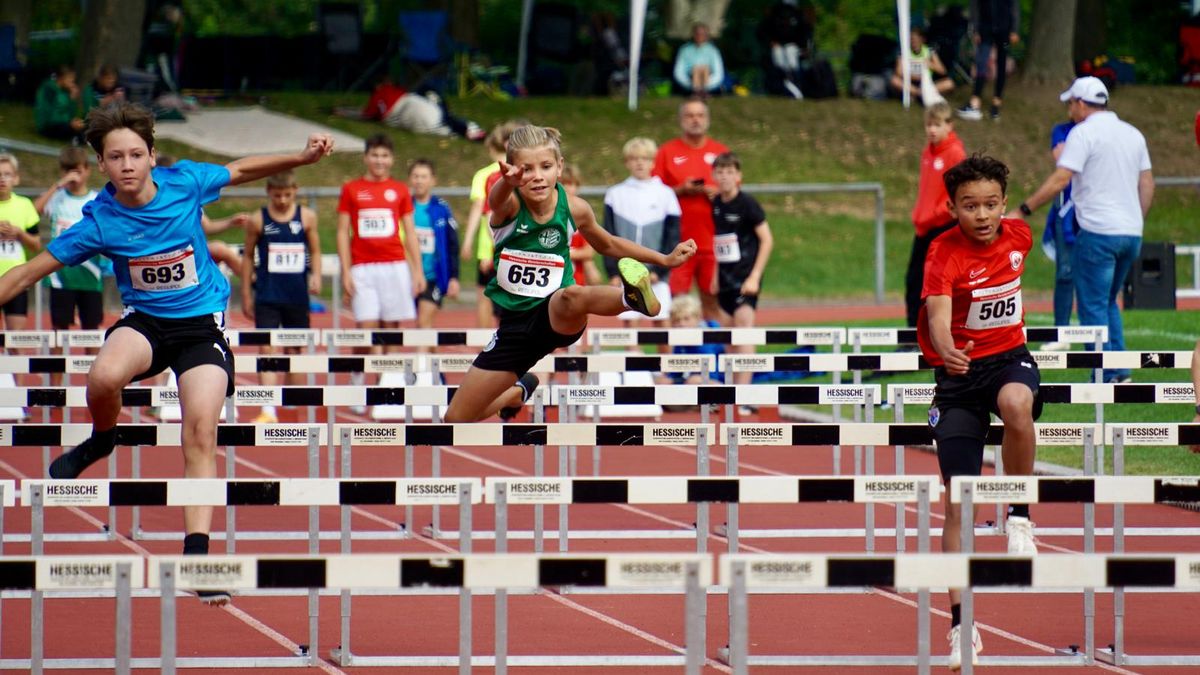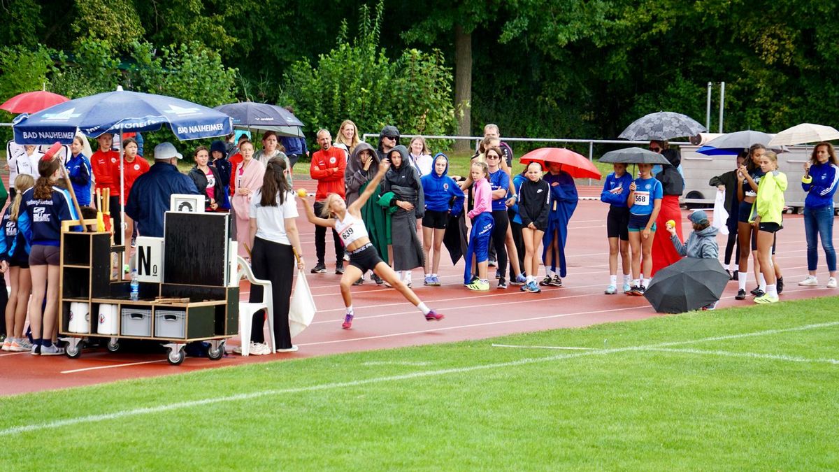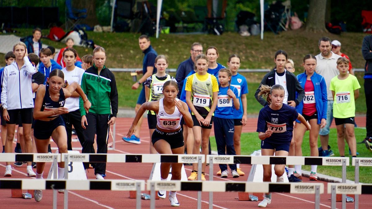 Der heutige Samstag stand leichtathletisch gesehen in Hessen ganz im Zeichen des Hessenfinales der Deutschen Jugend-Mannschaftsmeisterschaft U14 (DJMM U14) auf der Sportanlage Burgfeld in Friedberg. Die Wettervorhersage war nicht sehr verheißungsvoll, und der Regen kam dann auch. Und der wirbelte den Zeitplan dann am frühen Nachmittag auch schon etwas durcheinander. Den Wettkämpfen tat das aber keinen Abbruch. Man sah tolle Leistungen und spannende Wettkämpfe.