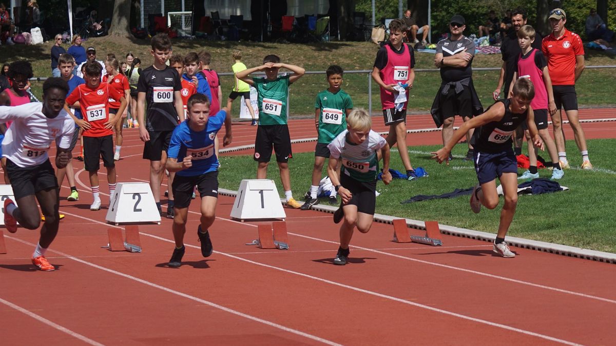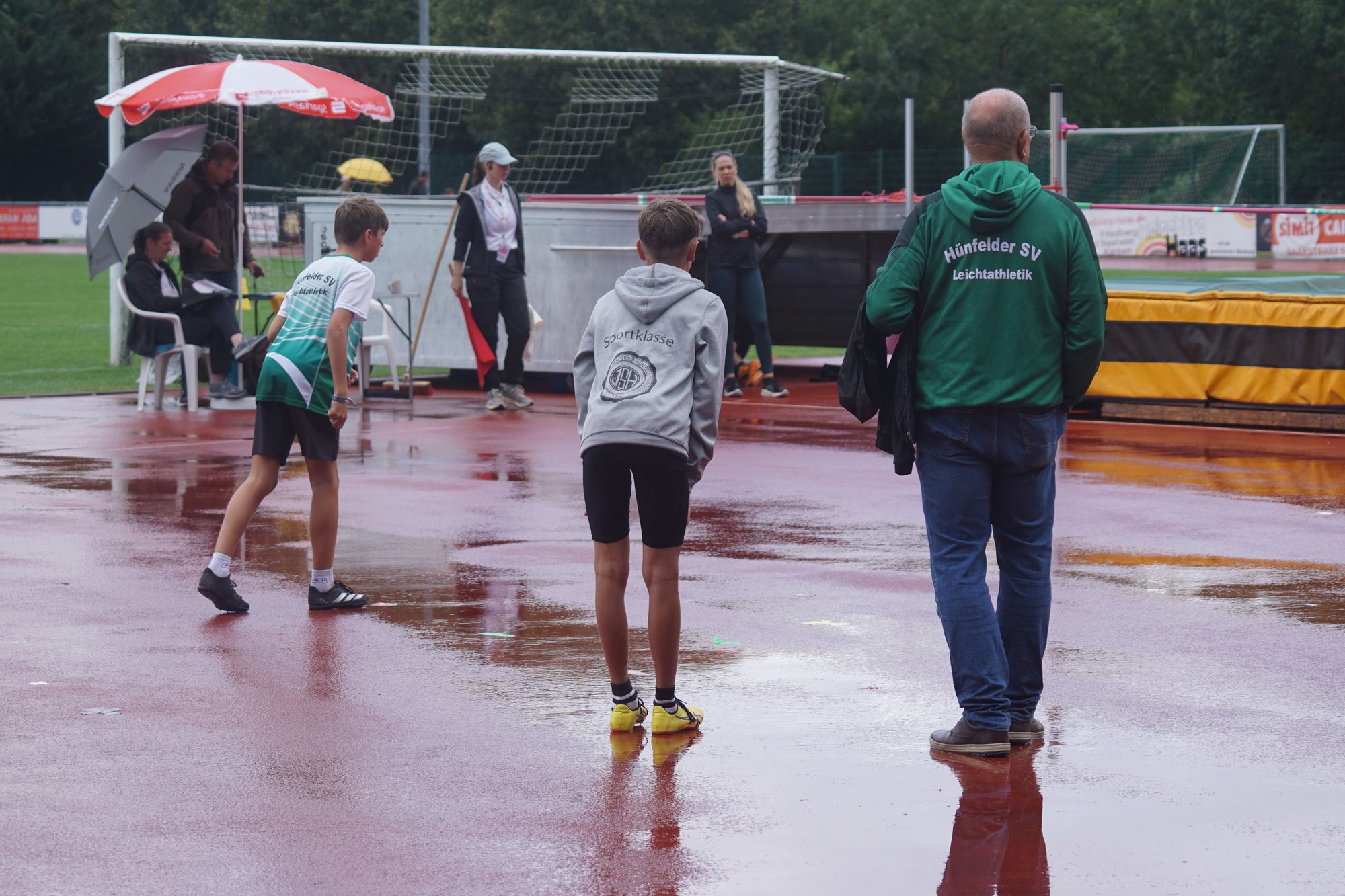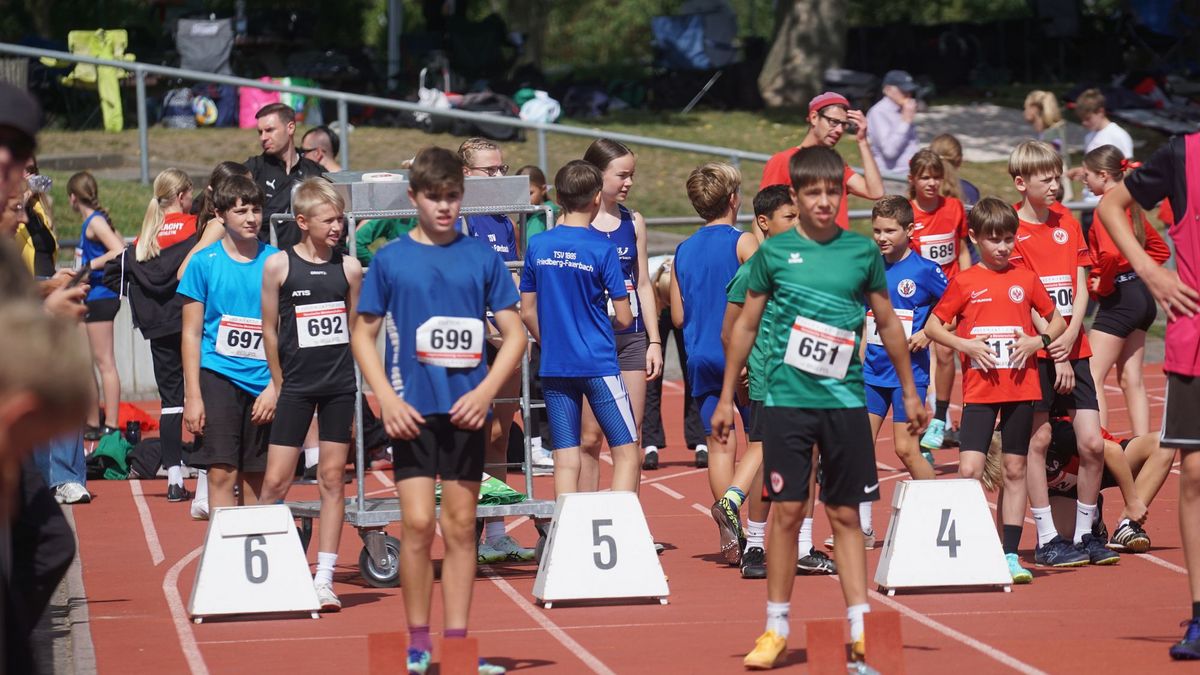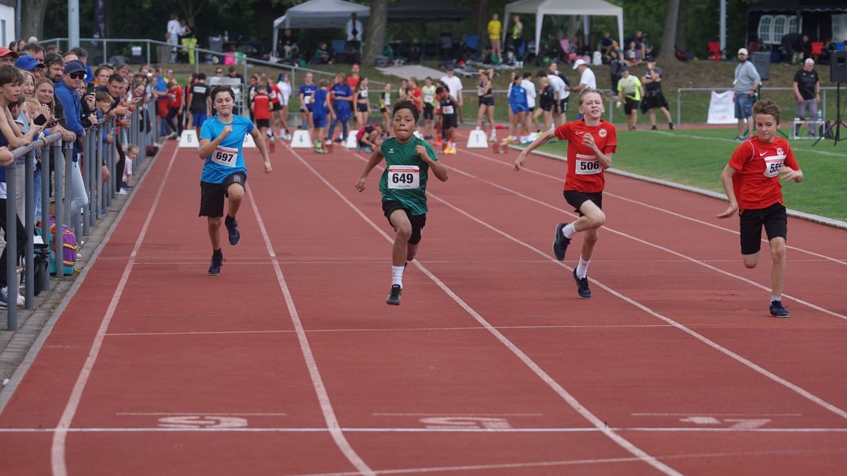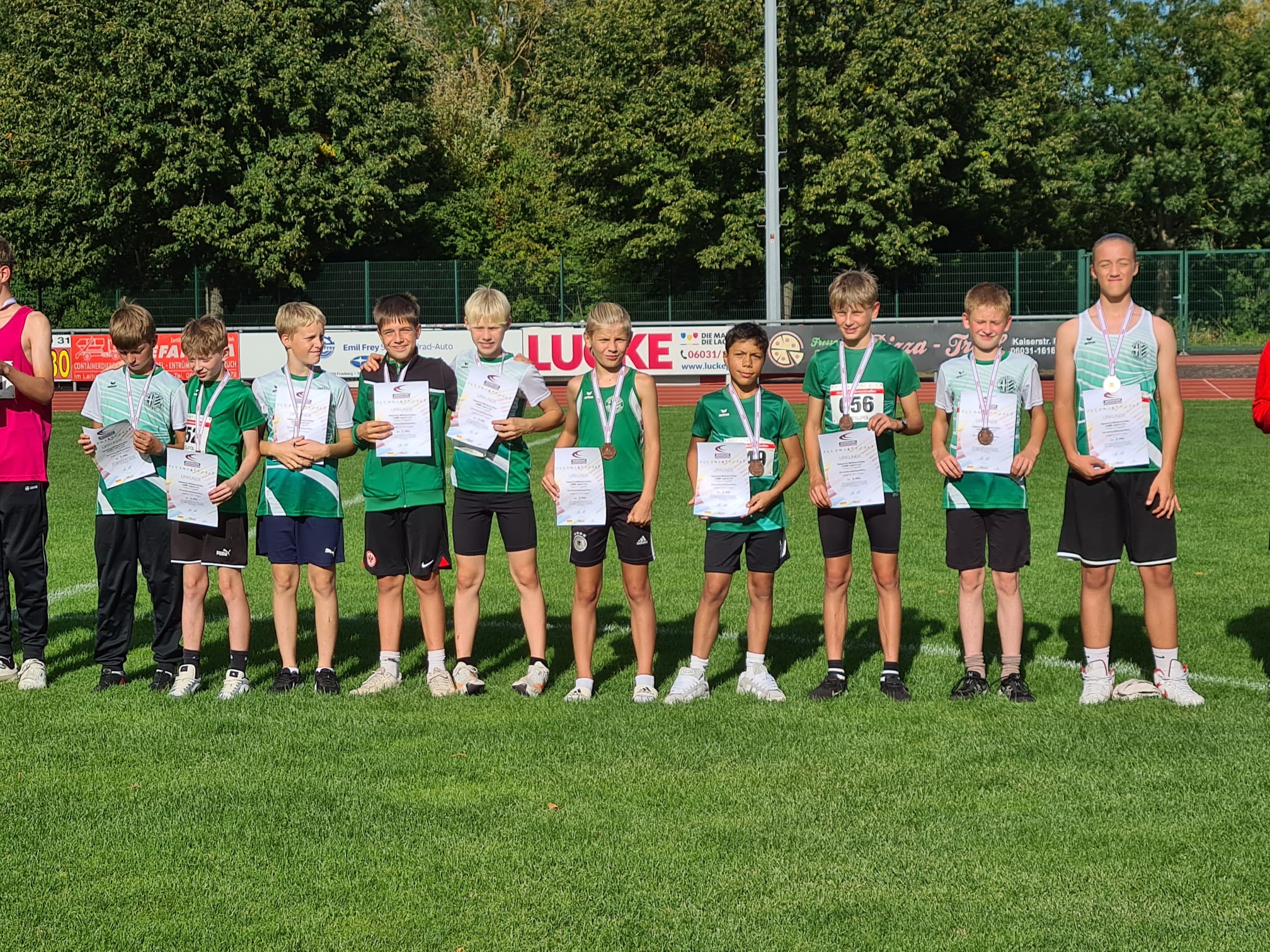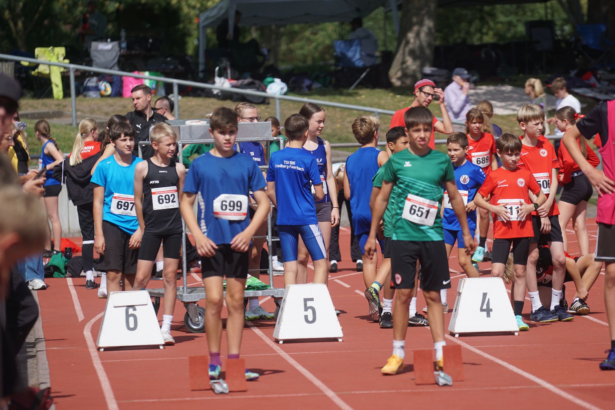 Der heutige Samstag stand leichtathletisch gesehen in Hessen ganz im Zeichen des Hessenfinales der Deutschen Jugend-Mannschaftsmeisterschaft U14 (DJMM U14) auf der Sportanlage Burgfeld in Friedberg. Die Wettervorhersage war nicht sehr verheißungsvoll, und der Regen kam dann auch. Und der wirbelte den Zeitplan dann am frühen Nachmittag auch schon etwas durcheinander. Den Wettkämpfen tat das aber keinen Abbruch. Man sah tolle Leistungen und spannende Wettkämpfe.