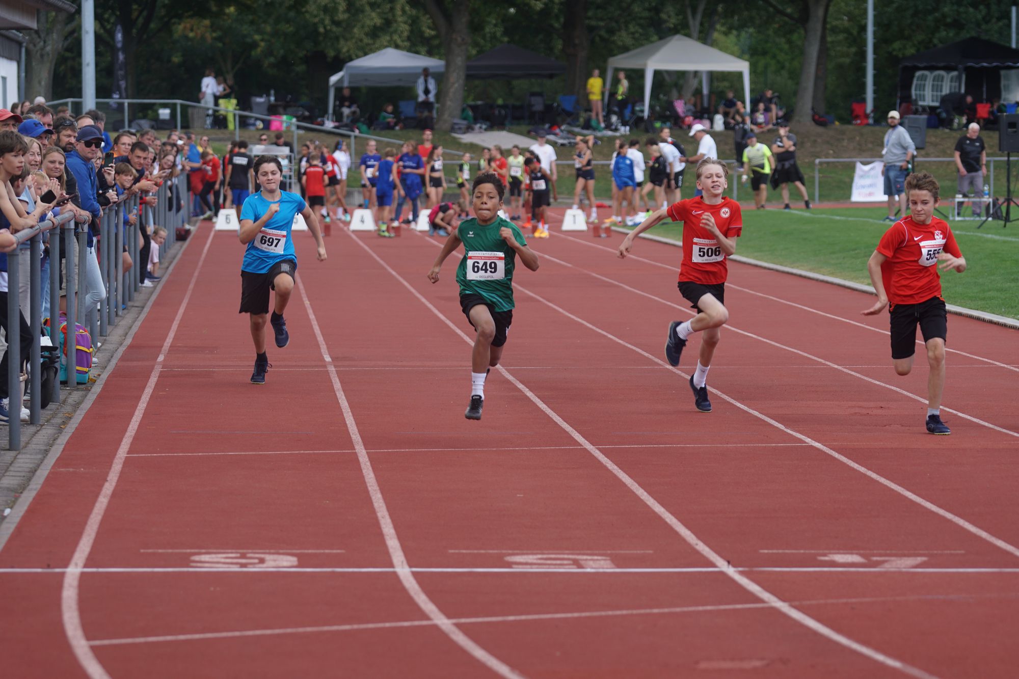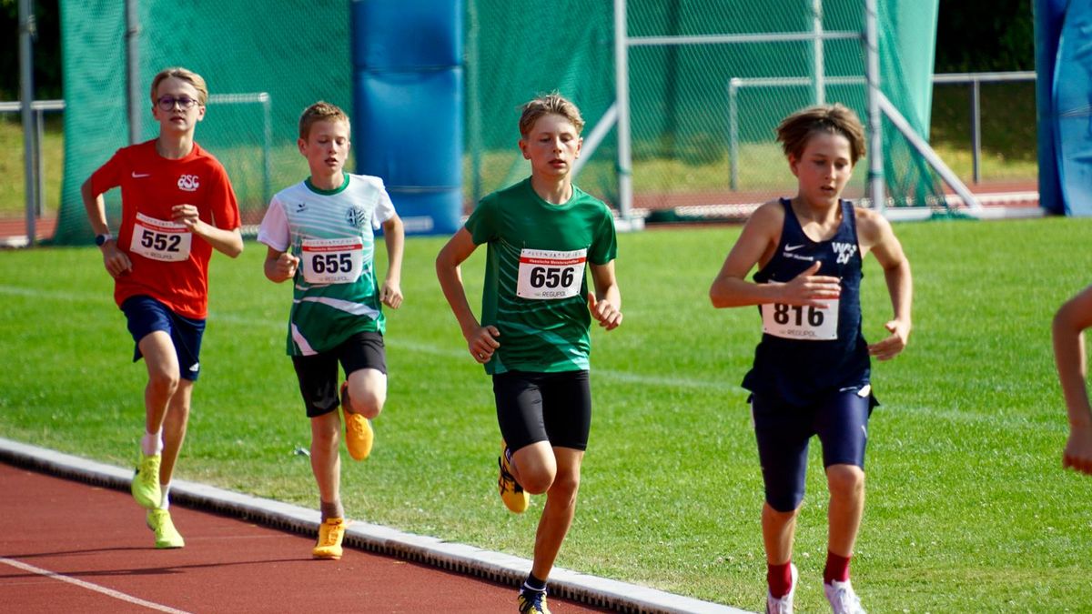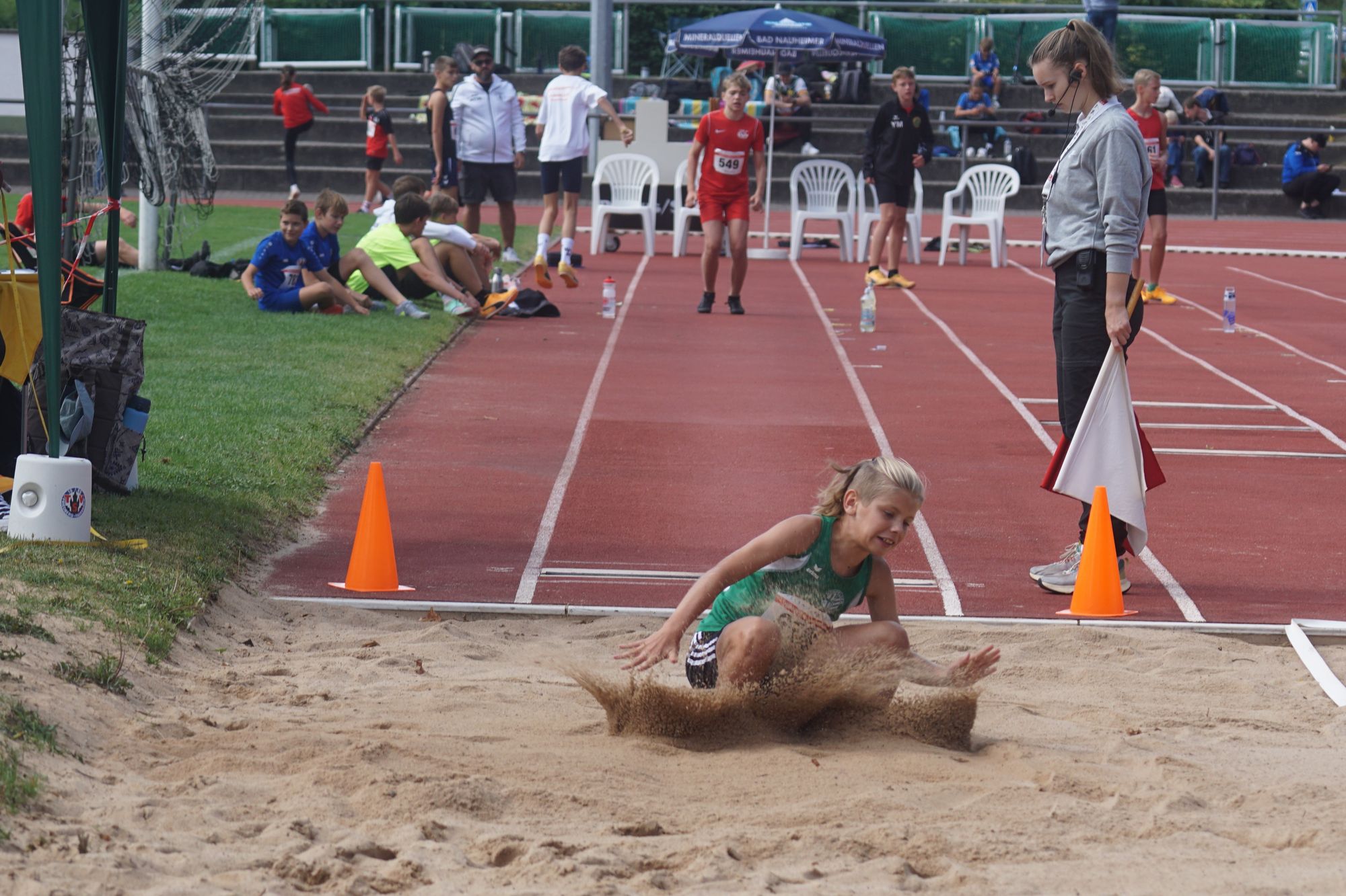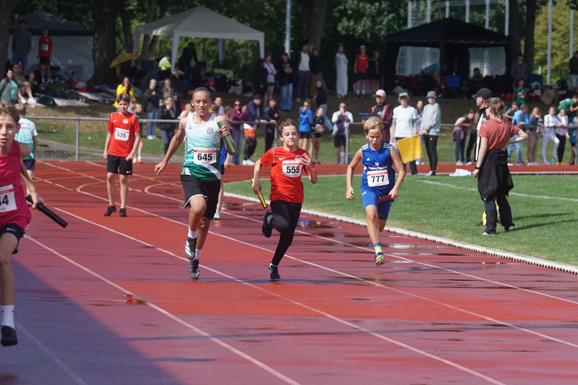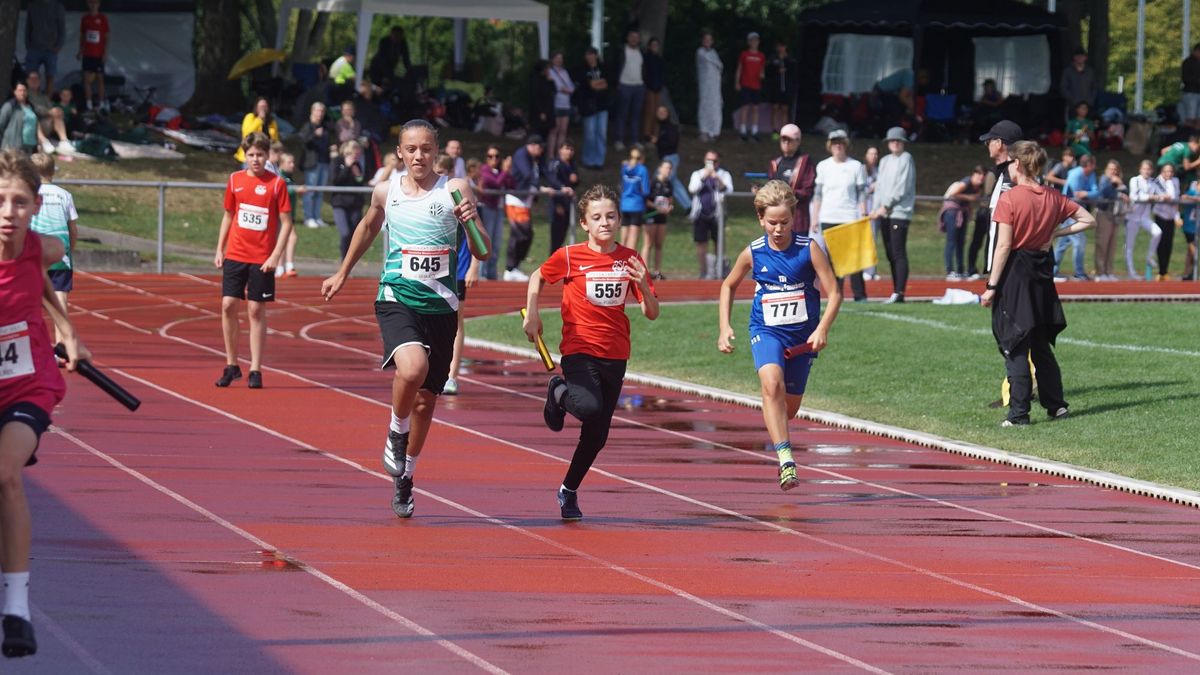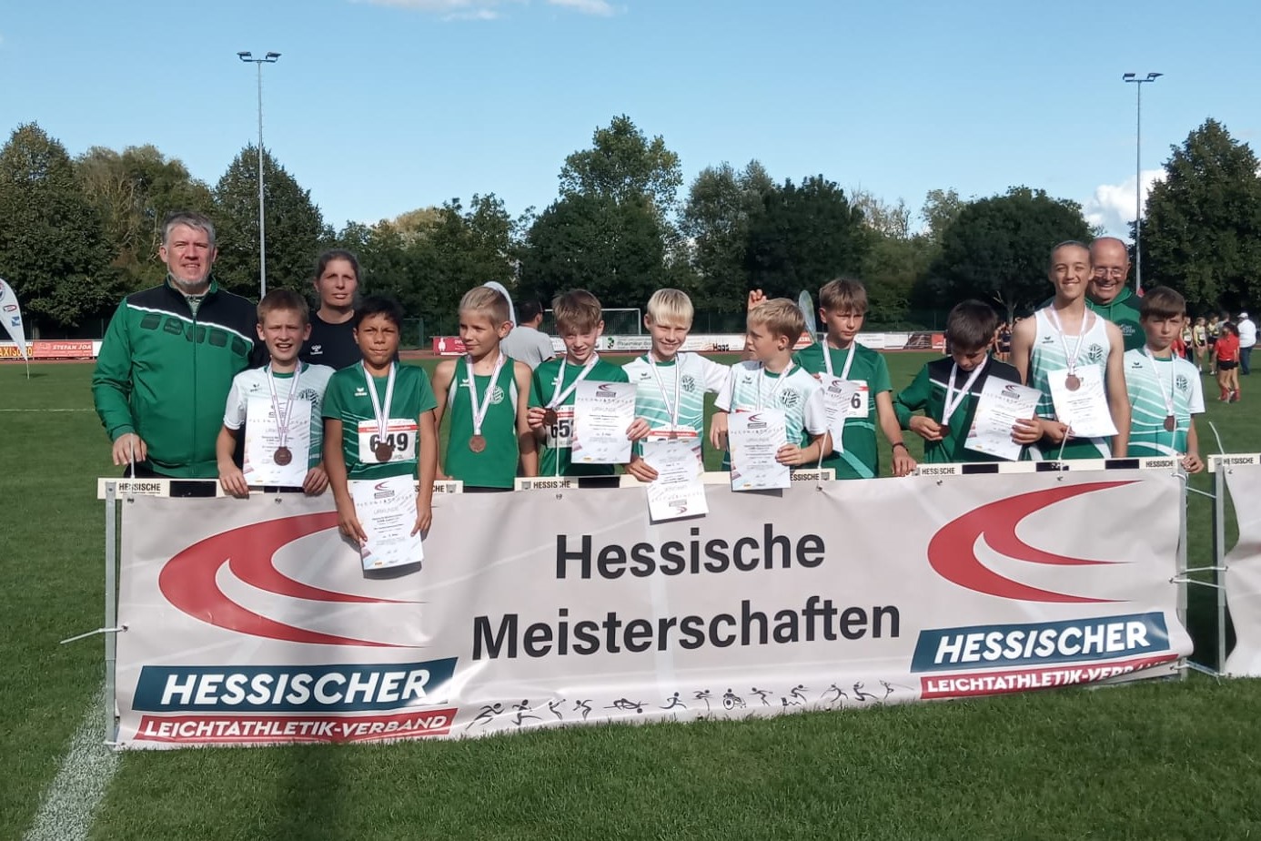Der heutige Samstag stand leichtathletisch gesehen in Hessen ganz im Zeichen des Hessenfinales der Deutschen Jugend-Mannschaftsmeisterschaft U14 (DJMM U14) auf der Sportanlage Burgfeld in Friedberg. Die Wettervorhersage war nicht sehr verheißungsvoll, und der Regen kam dann auch. Und der wirbelte den Zeitplan dann am frühen Nachmittag auch schon etwas durcheinander. Den Wettkämpfen tat das aber keinen Abbruch. Man sah tolle Leistungen und spannende Wettkämpfe.