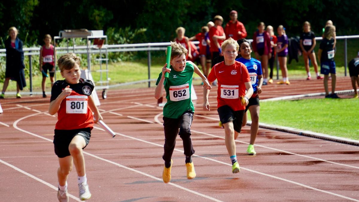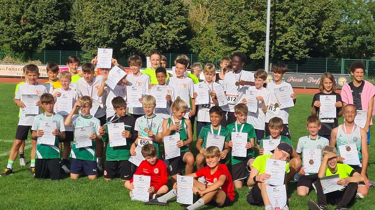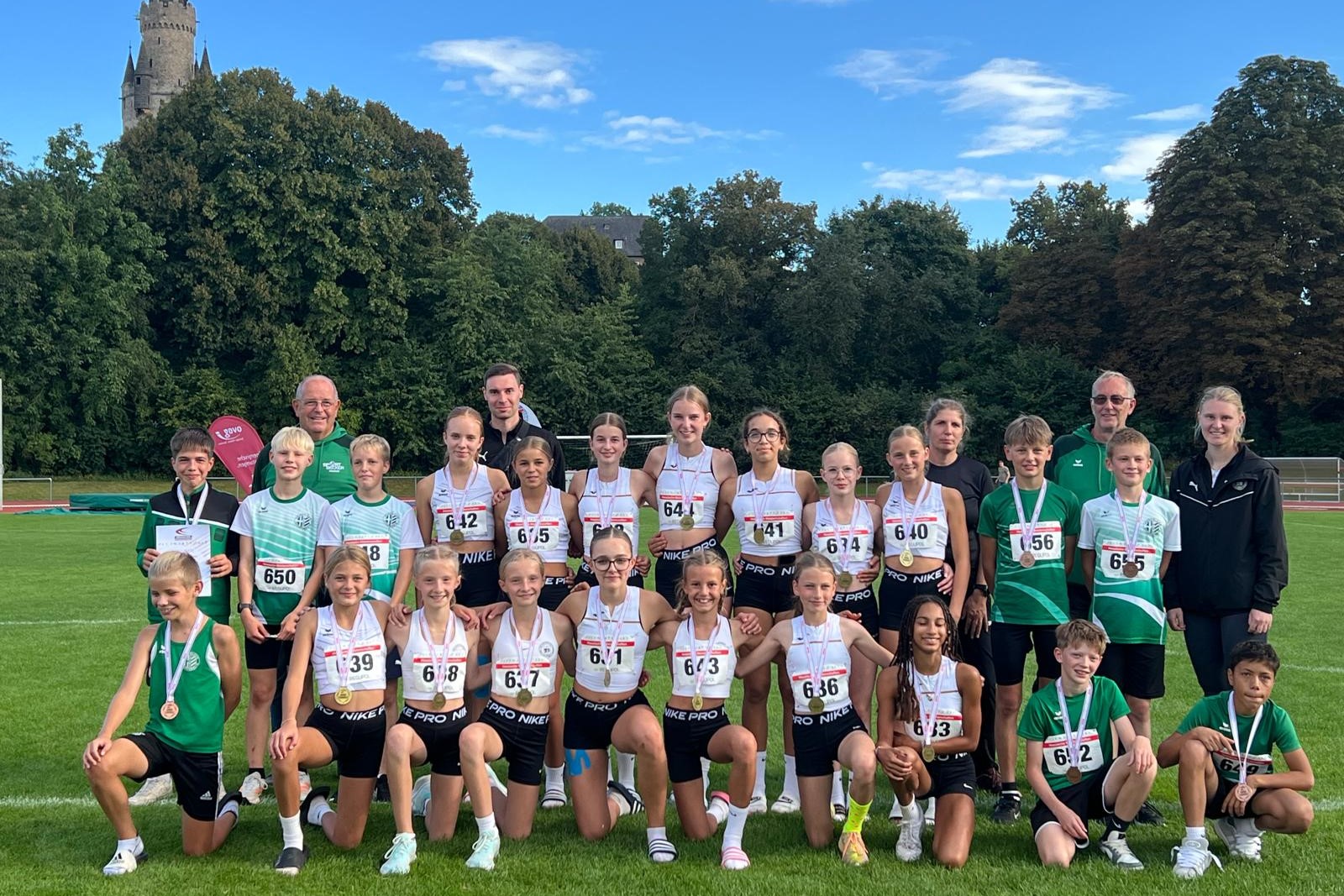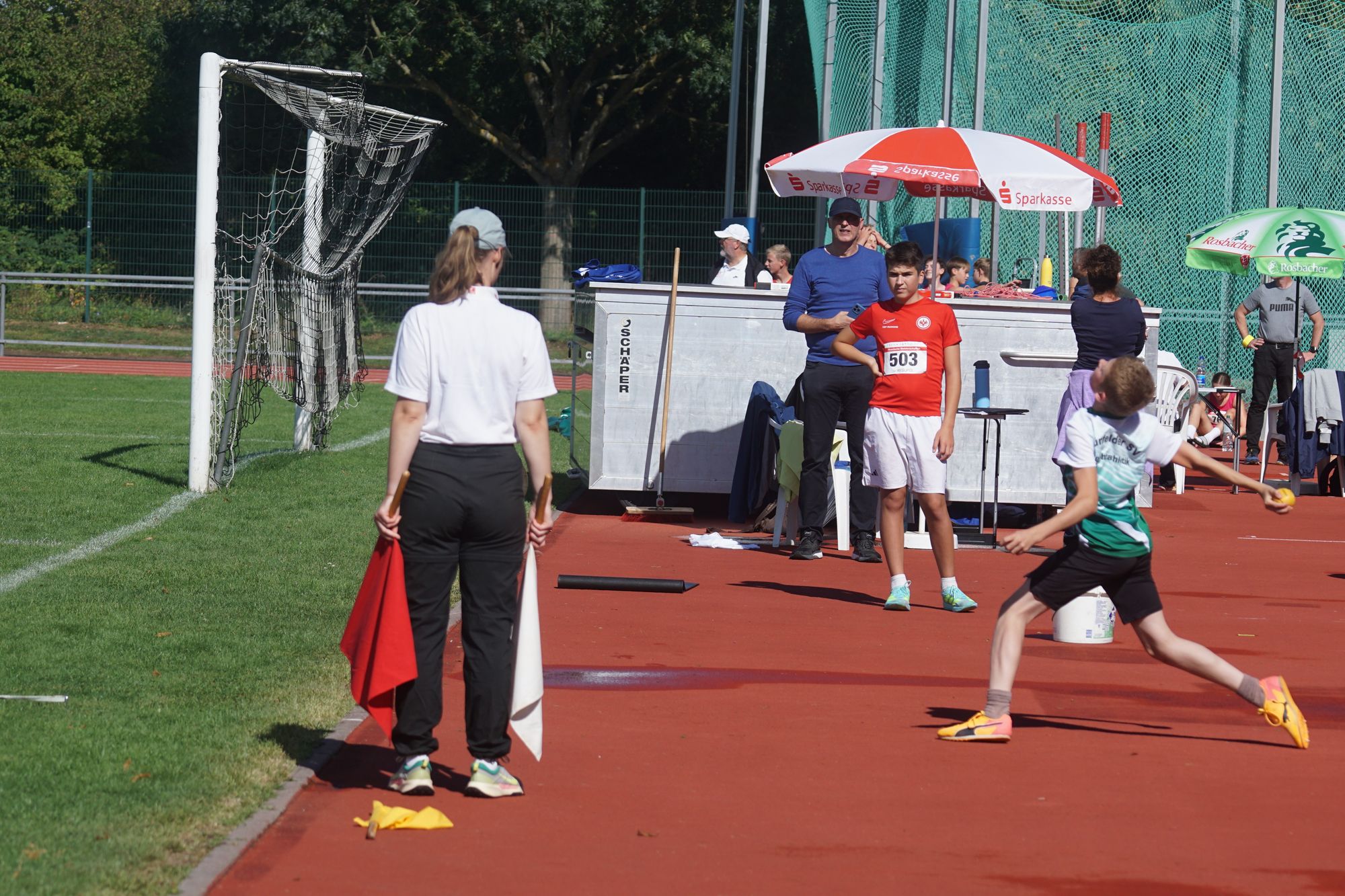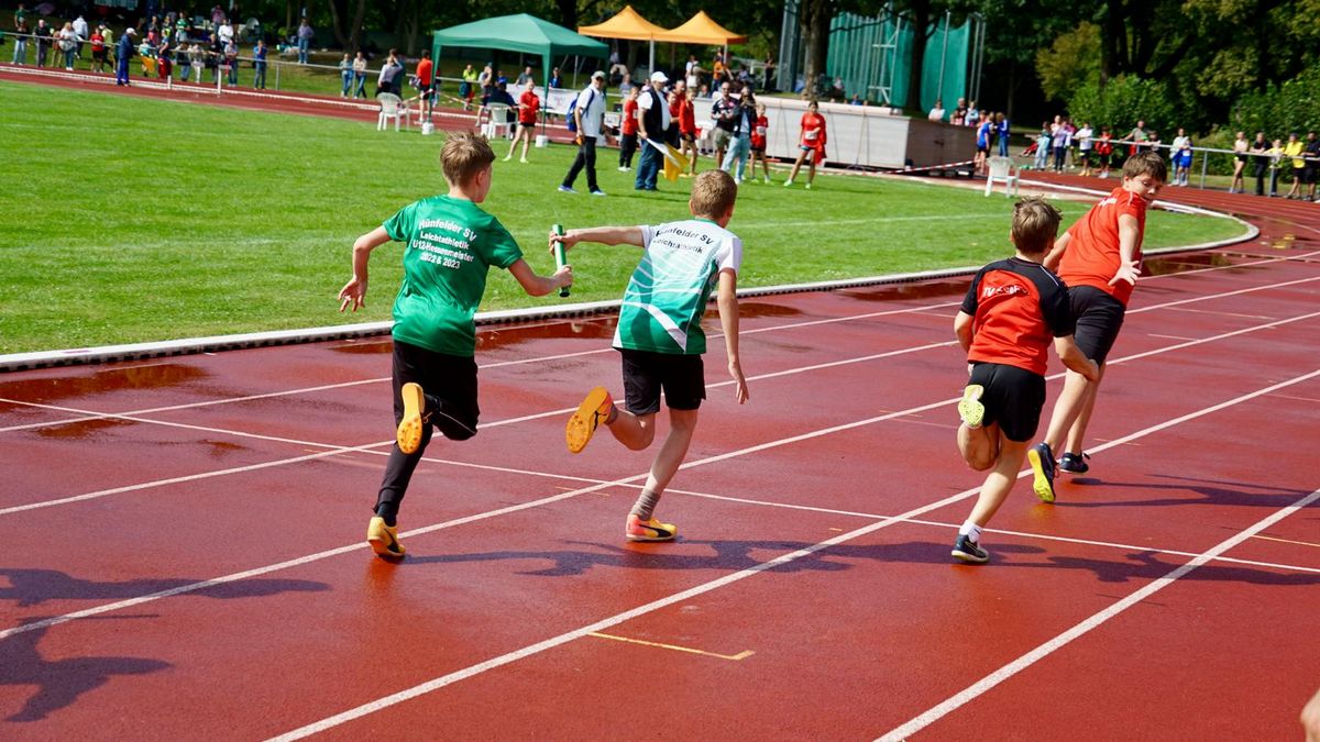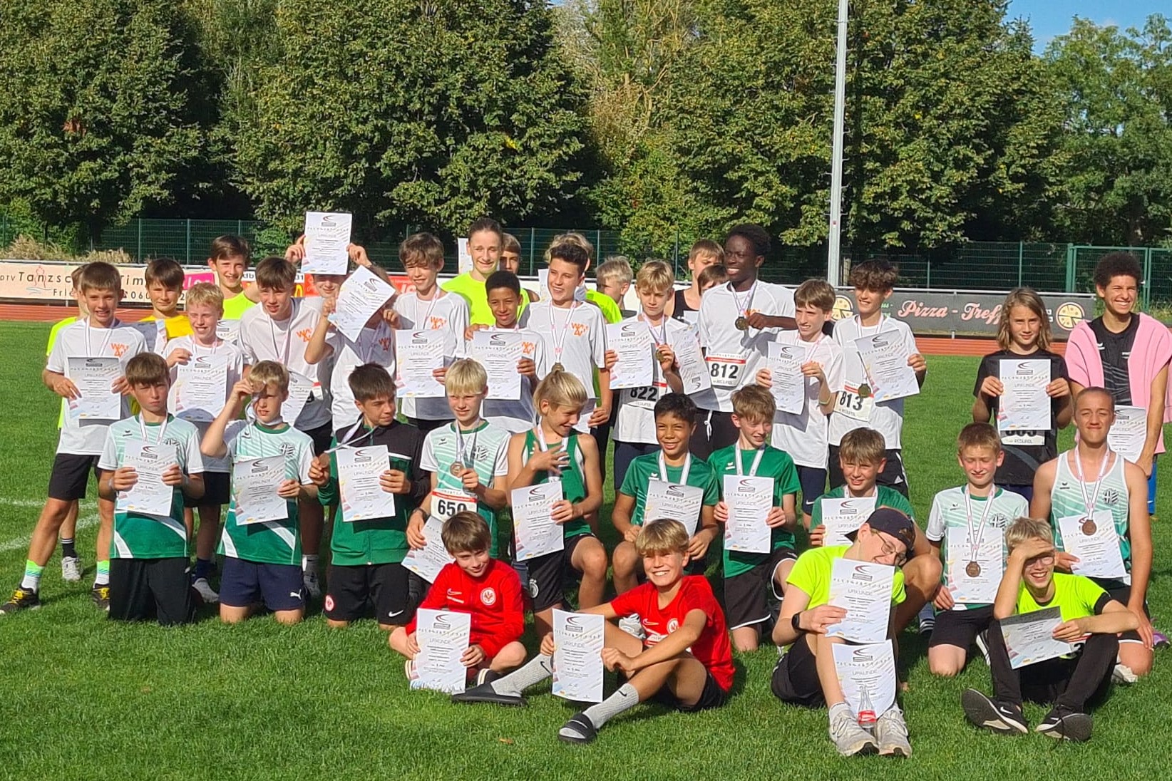 Der heutige Samstag stand leichtathletisch gesehen in Hessen ganz im Zeichen des Hessenfinales der Deutschen Jugend-Mannschaftsmeisterschaft U14 (DJMM U14) auf der Sportanlage Burgfeld in Friedberg. Die Wettervorhersage war nicht sehr verheißungsvoll, und der Regen kam dann auch. Und der wirbelte den Zeitplan dann am frühen Nachmittag auch schon etwas durcheinander. Den Wettkämpfen tat das aber keinen Abbruch. Man sah tolle Leistungen und spannende Wettkämpfe.