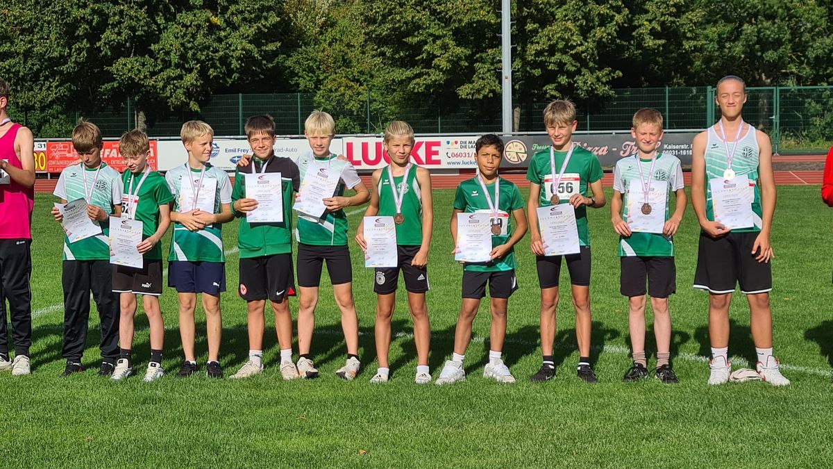 Ziel war möglichst Platz 5 zu erreichen. Und dann kam alles ganz anders. Das was im Vorkampf nicht geklappt hatte klappte. Die Jungs steigerten sich von Disziplin zu Disziplin. Vor dem abschließenden 800m-Lauf war man gar auf Platz 4. Und nach dem 800m-Lauf war es dann sogar Platz 3 mit 6.161 Punkten, 508 Punkte mehr wie im Vorkampf. Von Platz 2 nur 28 Punkte entfernt.