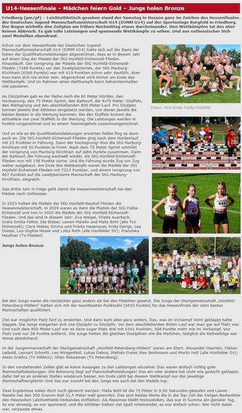 In 2023 holten die Mädels der StG Hünfeld-Neuhof-Flieden die Hessenmeisterschaft, in 2024 waren es dann die Mädels der StG Fulda-Eichenzell und nun in 2025 die Mädels der StG Hünfeld-Eichenzell-Flieden. Und das sind in diesem Jahr: