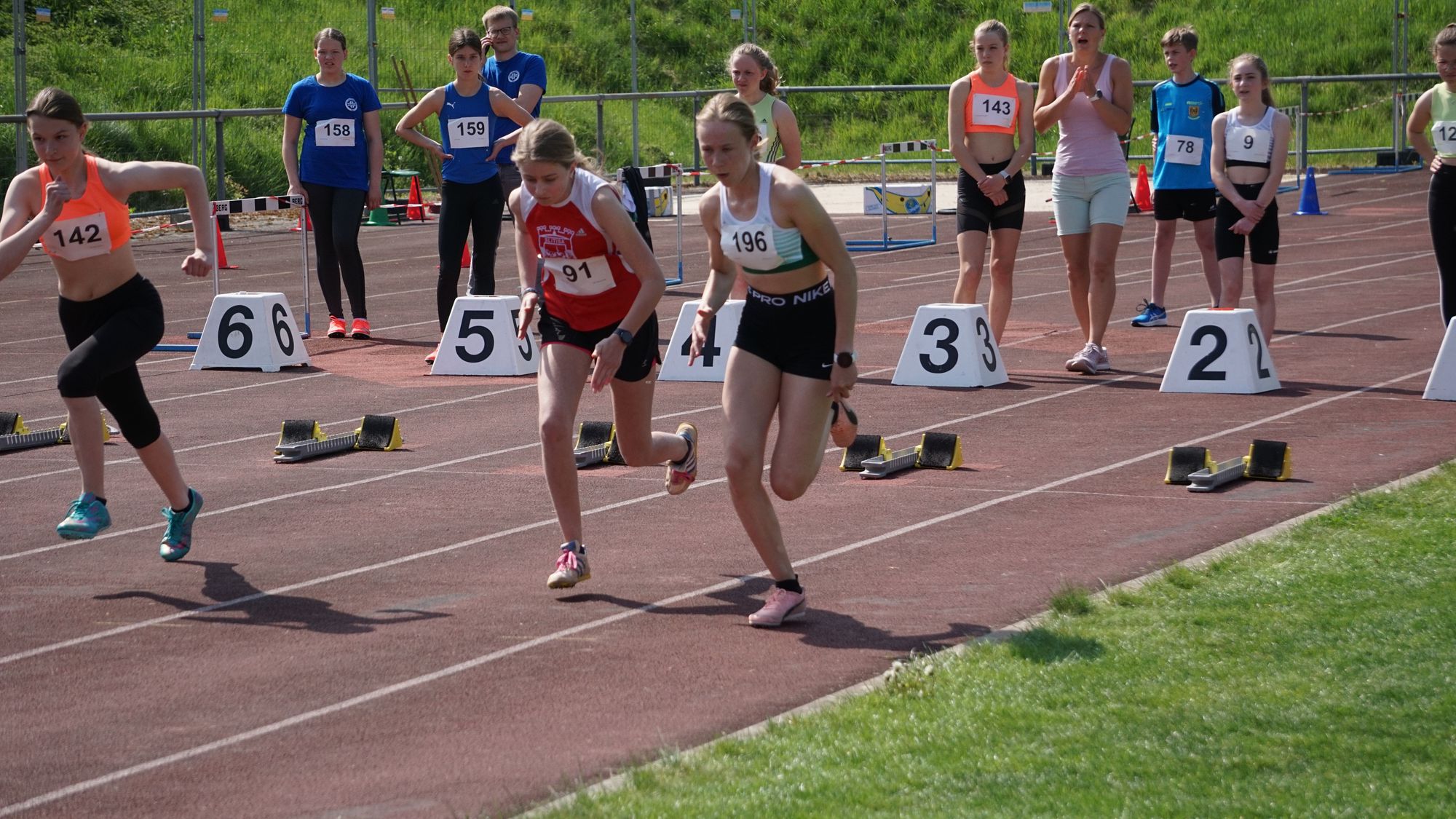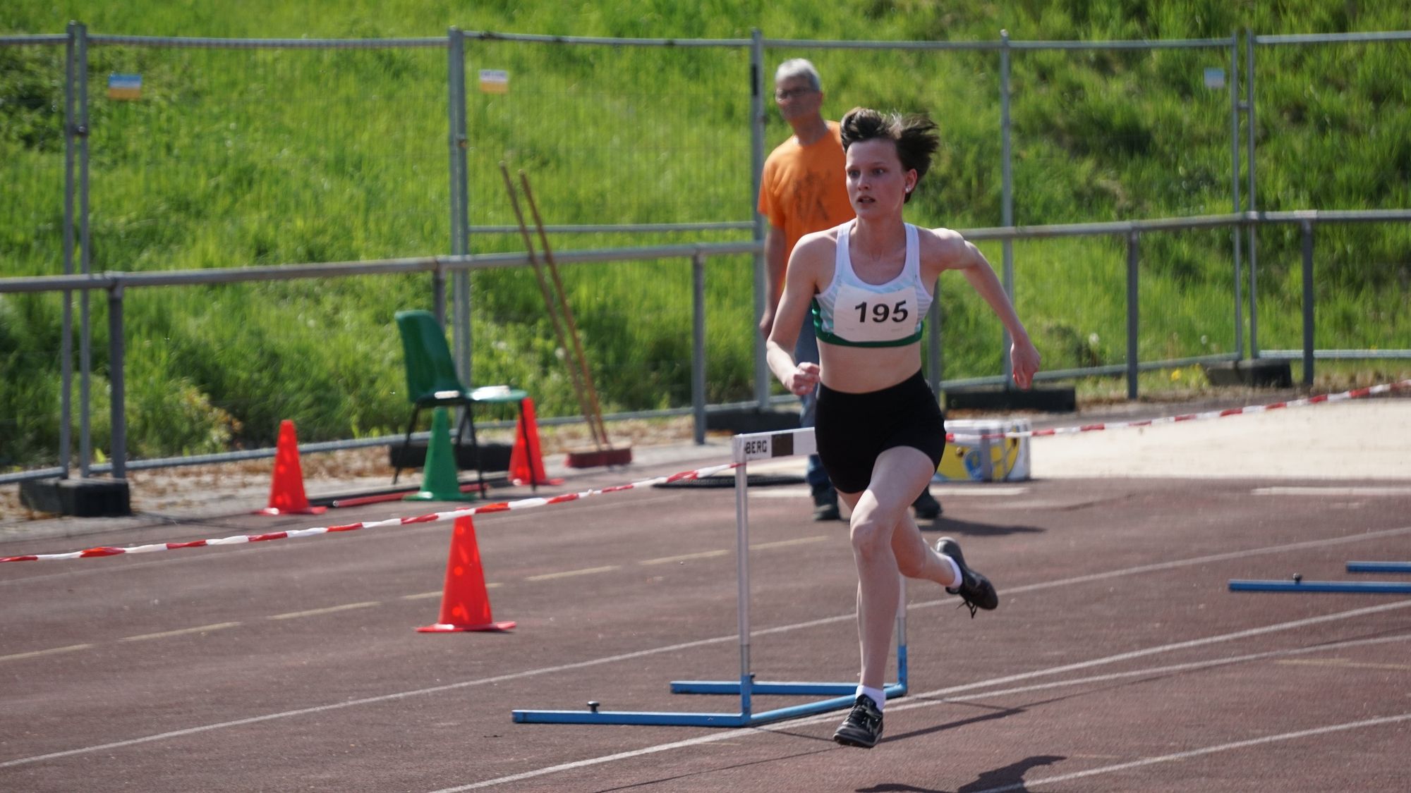 - Ist heute mit einer Bestleistung im Hochsprung von 1,33m angereist. 1,42m noch problemlos übersprungen; bei 1,45m war dann Schluss, 1. Platz! Im Ergebnis die persönliche Bestleistung um 9 cm nach oben geschraubt; und in der Ewigen Bestenliste des Hünfelder SV die vor 28 Jahren von Theresa Baier gesetzte Bestleistung von 1,40m um 2 cm überboten! Im Anschluss wurde dann die persönliche Bestleistung über 75m auf 11,13 Sekunden verbessert 3.Platz!