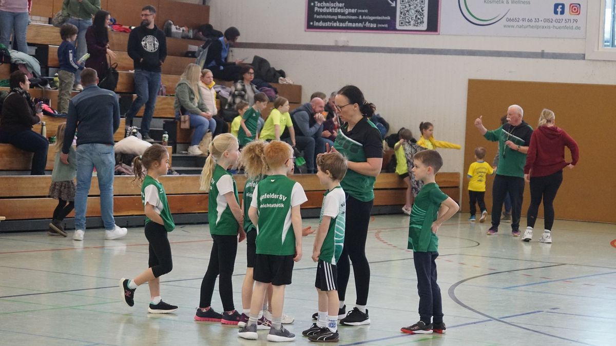 Von den gemeldeten 250 Athleten im Alter von 5 bis 11 Jahren waren dann krankheitsbedingt „nur“ 240 aus 7 Vereinen am Start, eine Beteiligung auf Rekordniveau. Der Hünfelder SV stellte mit 53 Athleten erneut das größte Kontingent, gefolgt von der LG Fulda mit 45 und dem TV Petersberg mit 39 Athleten. Am Start waren insgesamt 28 Mannschaften, vom Hünfelder SV und der LG Fulda waren es jeweils 6 Mannschaften, je 2 in jeder Altersklasse.