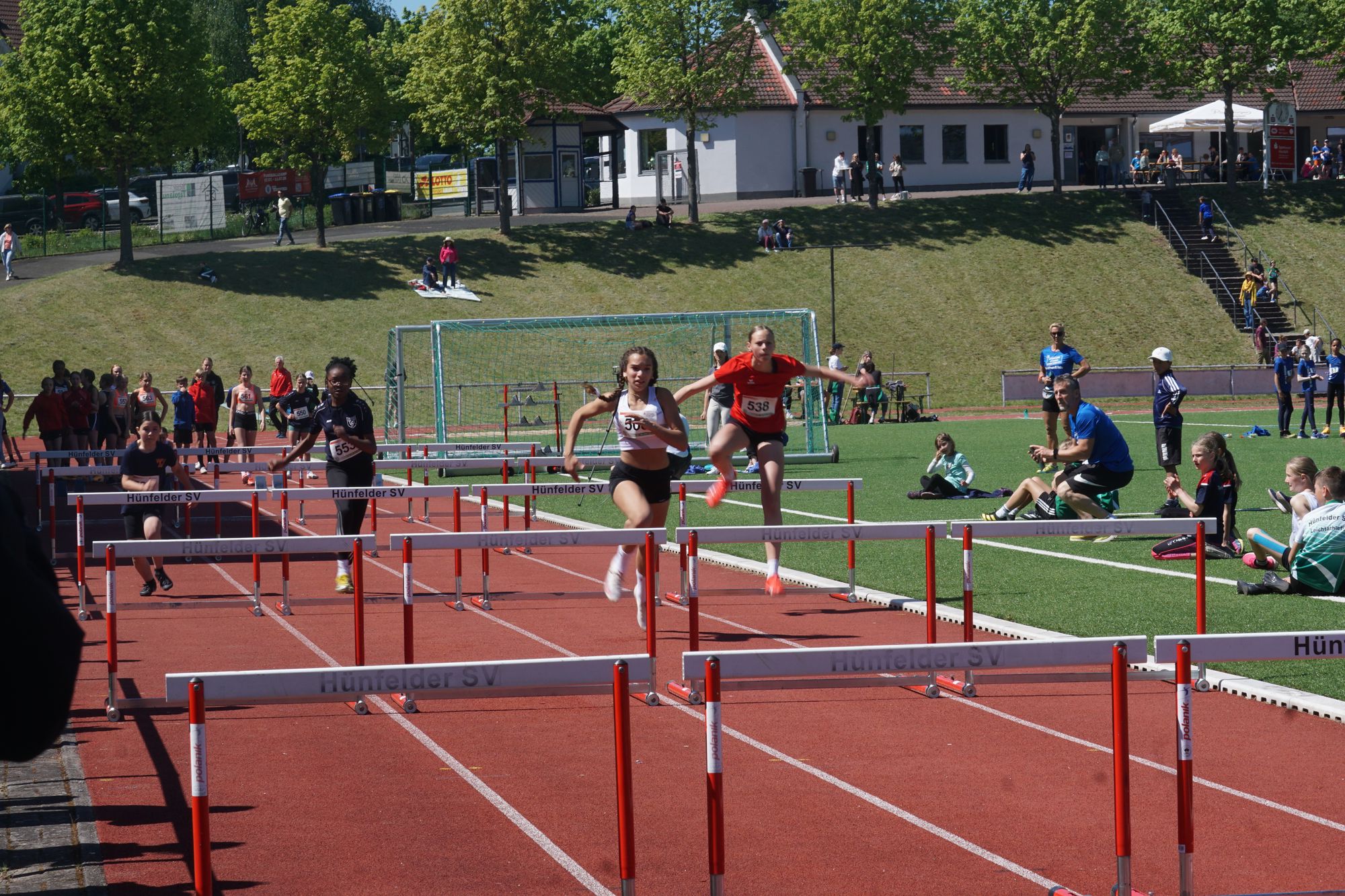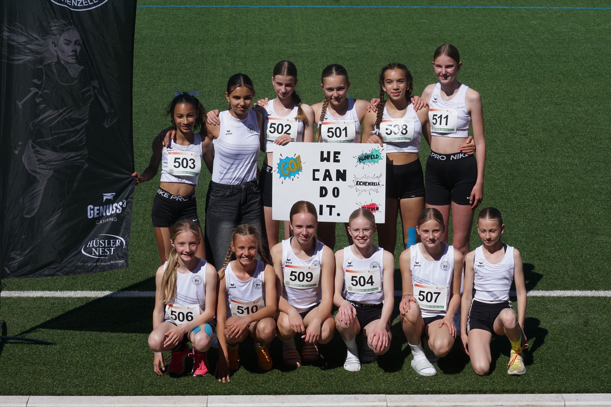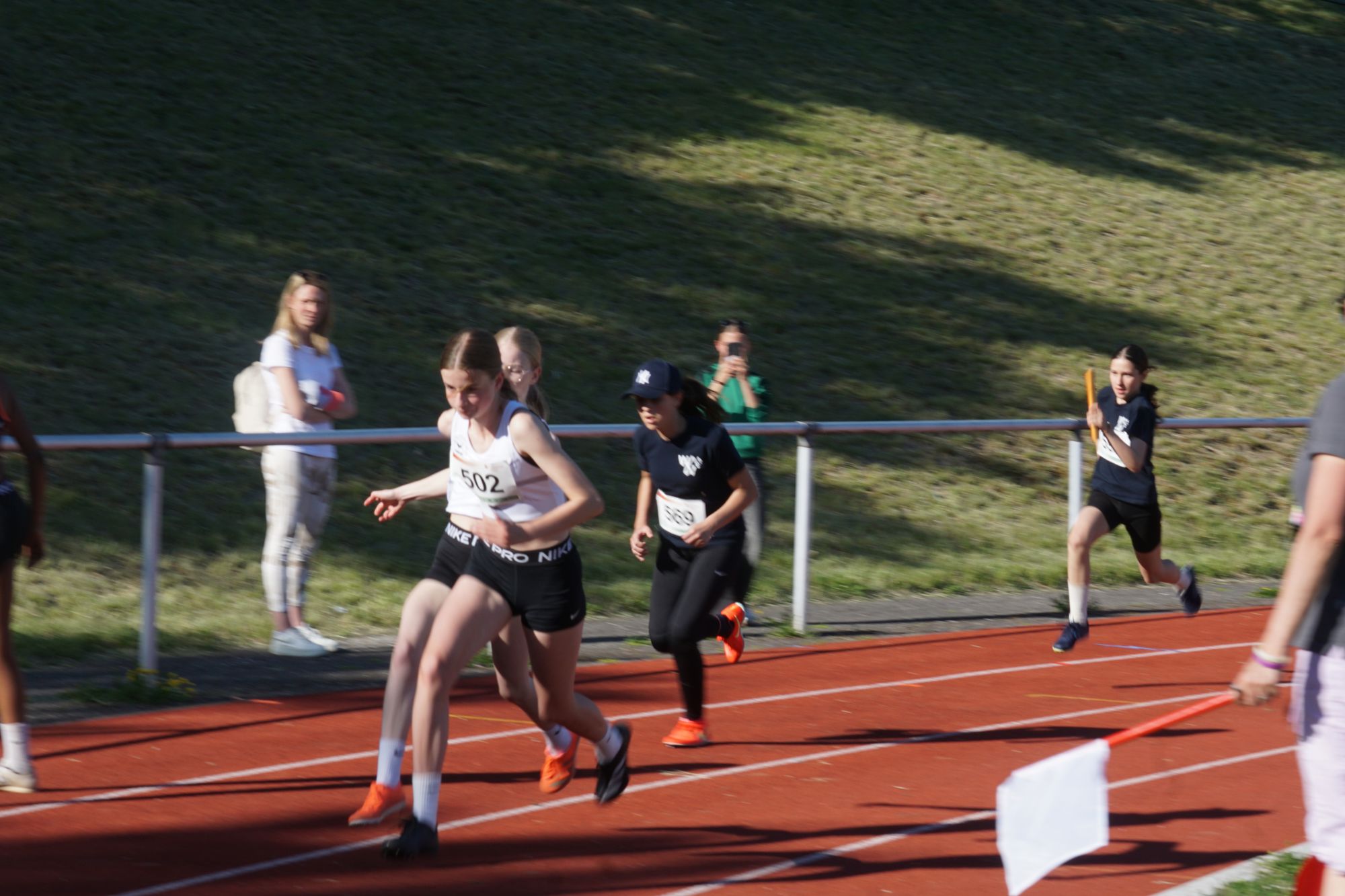 Das die U18-Mädels der Startgemeinschaft „Hünfeld-Fulda“ richtig schnell unterwegs sind, weiß man inzwischen. Ziel ist es, mit zwei Staffeln zu den Deutschen zu kommen! Dazu sind die beiden Staffeln so zusammengestellt worden, dass sie die Norm von 49,50 Sekunden jeweils schaffen können. In der heutigen Konstellation sind die Mädels aber auch noch nie zusammengelaufen. Beide Staffeln lieferten sich ein couragiertes Rennen. Die erste Staffel unterbot in 49,15 Sekunden die Norm deutlich. Und auch die zweite Staffel lieferte in 50,38 Sekunden ein TOP-Ergebnis ab! Wäre der dritte Wechsel nicht sprichwörtlich in die Hose gegangen. Die Schlussläuferin musste, um nicht außerhalb der Wechselzone den Staffelstab zu erhalten, ihre Geschwindigkeit voll rausnehmen. Wäre dieser Lapsus nicht passiert, wäre das auf der Zielgeraden ein sehr enges Ergebnis geworden. Aktuell stehen die beiden Staffeln der StG auf Platz 3 und 17 der Deutschen Bestenliste! In den U18-Staffeln aktuell ausnahmslos Mädels des Hünfelder SV!