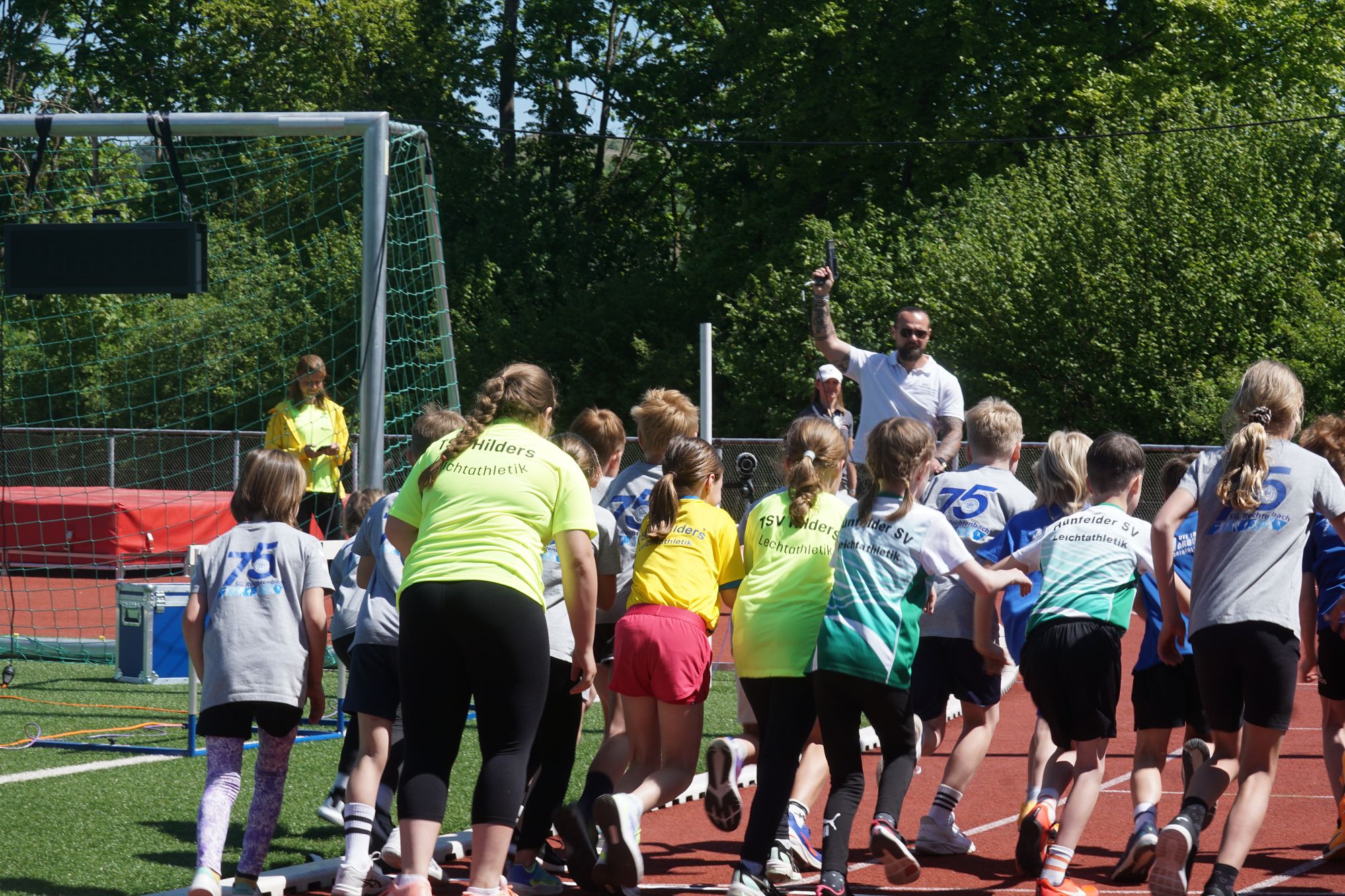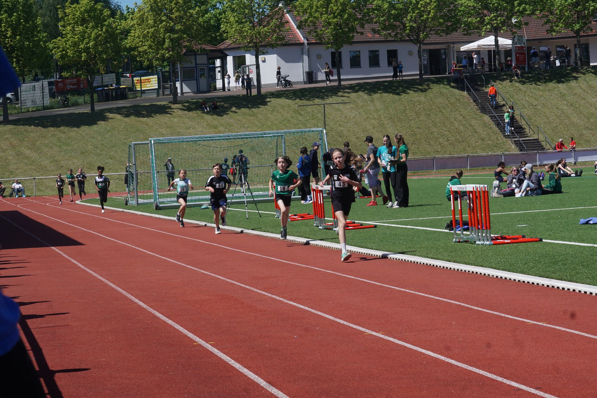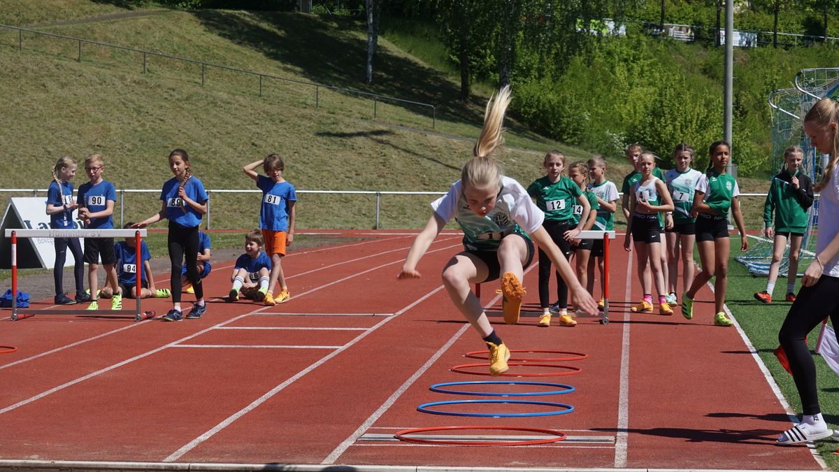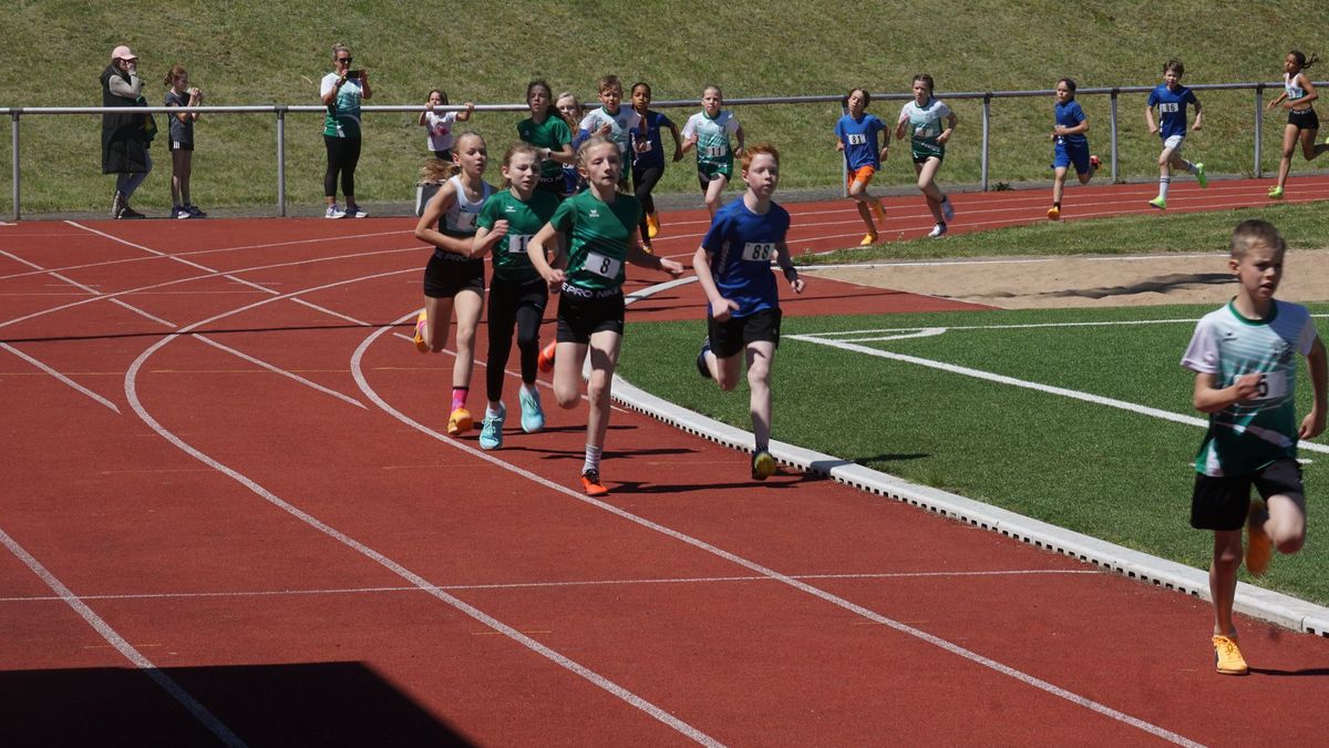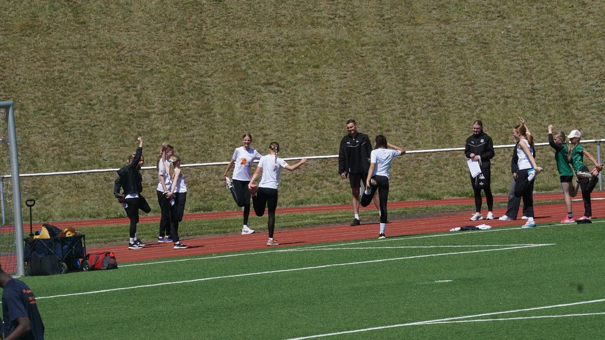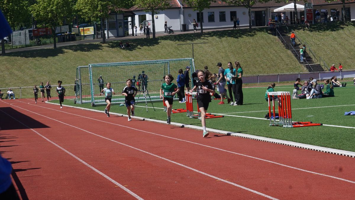 Im ersten Wettkampf im Hauptprogramm des heutigen Tages, dem „Mittelhessischer Vorkampf der KiLa U12“ (KiLa = Kinderleichtathletik) wurden u.a. die Vertreter der Region Mitte (Kreise Fulda, Vogelsberg, Gießen, Marburg, Wetzlar, Dillenburg) für den „Hessenentscheid der KiLa U12“ am 31.08.25 in Griesheim ermittelt. Der Wettkampf bestand aus „5“ Einzeldisziplinen (50m-Hindernissprintstaffel, Fünftsprung, Schlagwurf mit dem Stab, Drehwurf mit dem Tennisring und einem abschließenden 800m-Lauf).