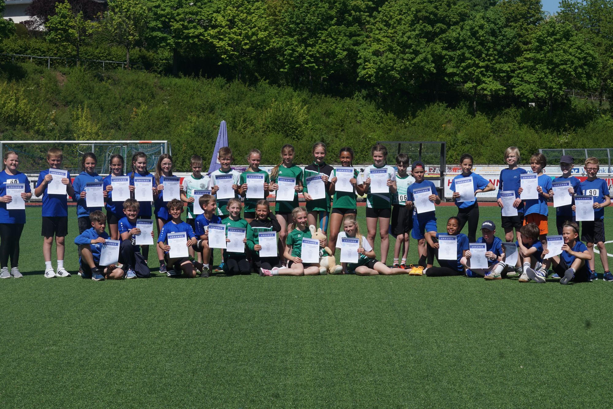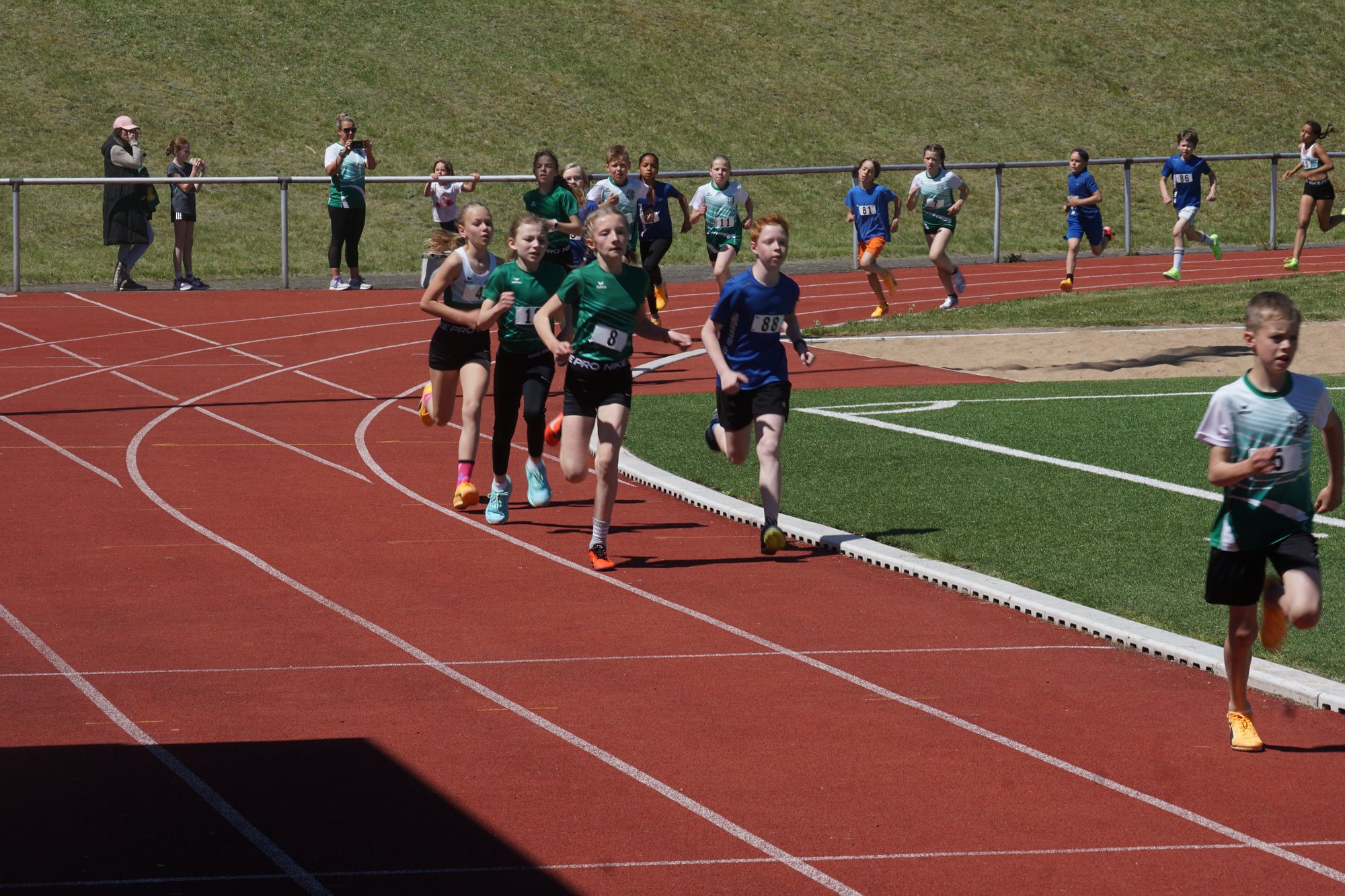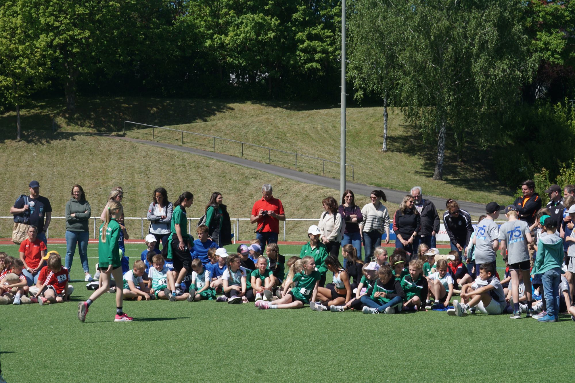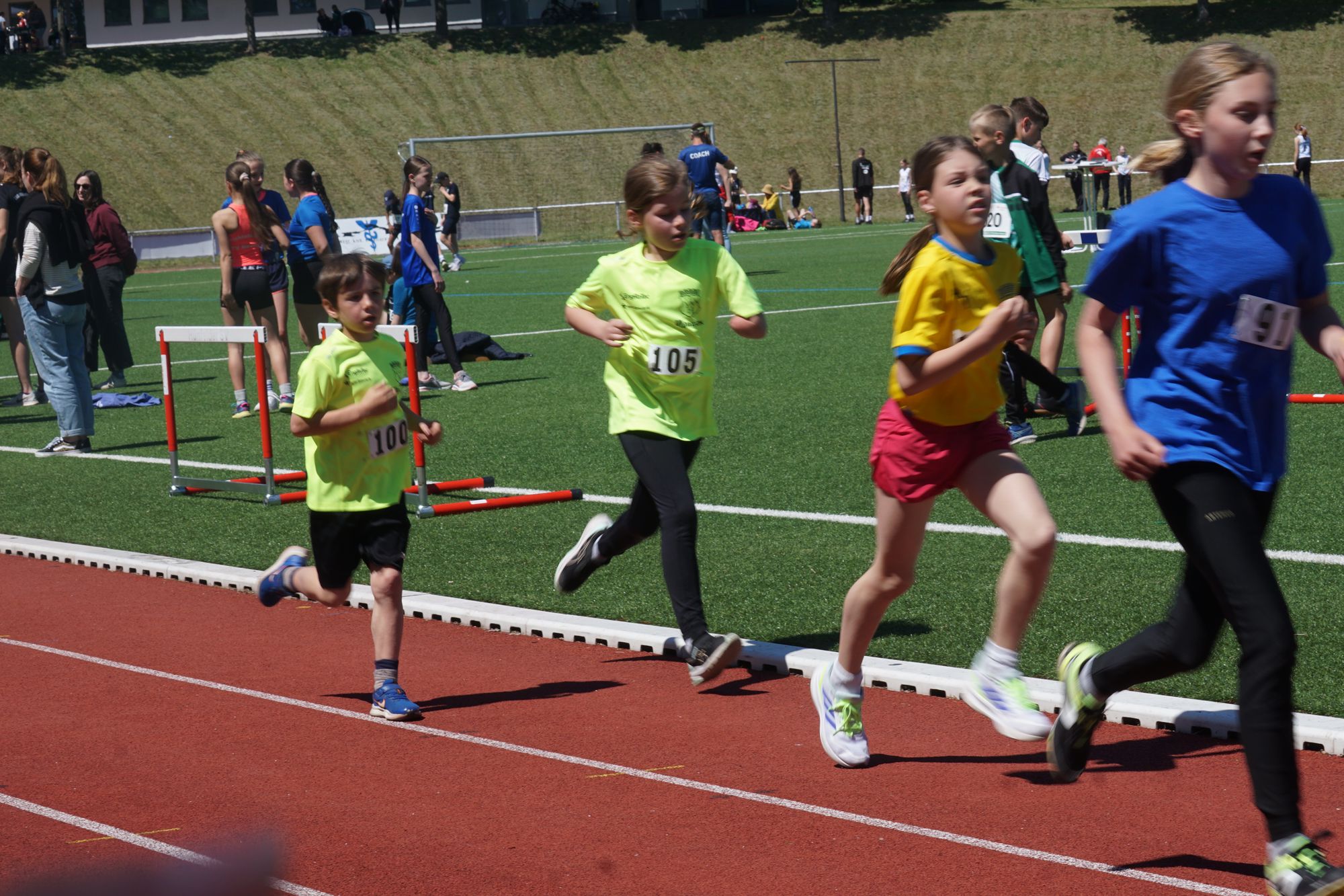 Im ersten Wettkampf im Hauptprogramm des heutigen Tages, dem „Mittelhessischer Vorkampf der KiLa U12“ (KiLa = Kinderleichtathletik) wurden u.a. die Vertreter der Region Mitte (Kreise Fulda, Vogelsberg, Gießen, Marburg, Wetzlar, Dillenburg) für den „Hessenentscheid der KiLa U12“ am 31.08.25 in Griesheim ermittelt. Der Wettkampf bestand aus „5“ Einzeldisziplinen (50m-Hindernissprintstaffel, Fünftsprung, Schlagwurf mit dem Stab, Drehwurf mit dem Tennisring und einem abschließenden 800m-Lauf).