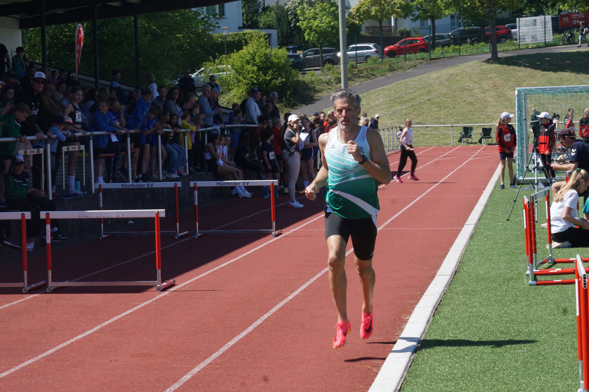 Nils hat die Gelegenheit beim Schopfe gepackt und zu Beginn des Wettkampftages heimatnah mit der Zeit von 2:20,52 Minuten die Norm seiner Altersklasse M50 für die Deutschen Meisterschaften von 2:22,00 Minuten unterboten. In der kurzen Pause zwischen KiLa U12 und DJMM U14 hat er dann nochmal nachgelegt und die 1.500m in einer Zeit von 4:44,08 Minuten zurückgelegt. Die DM-Norm von 4:51,00 Minuten ebenfalls unterboten. Damit kann Nils im August bei den Deutschen Meisterschaften der Masters in Gotha für den Hünfelder SV über beide Disziplinen an den Start gehen.