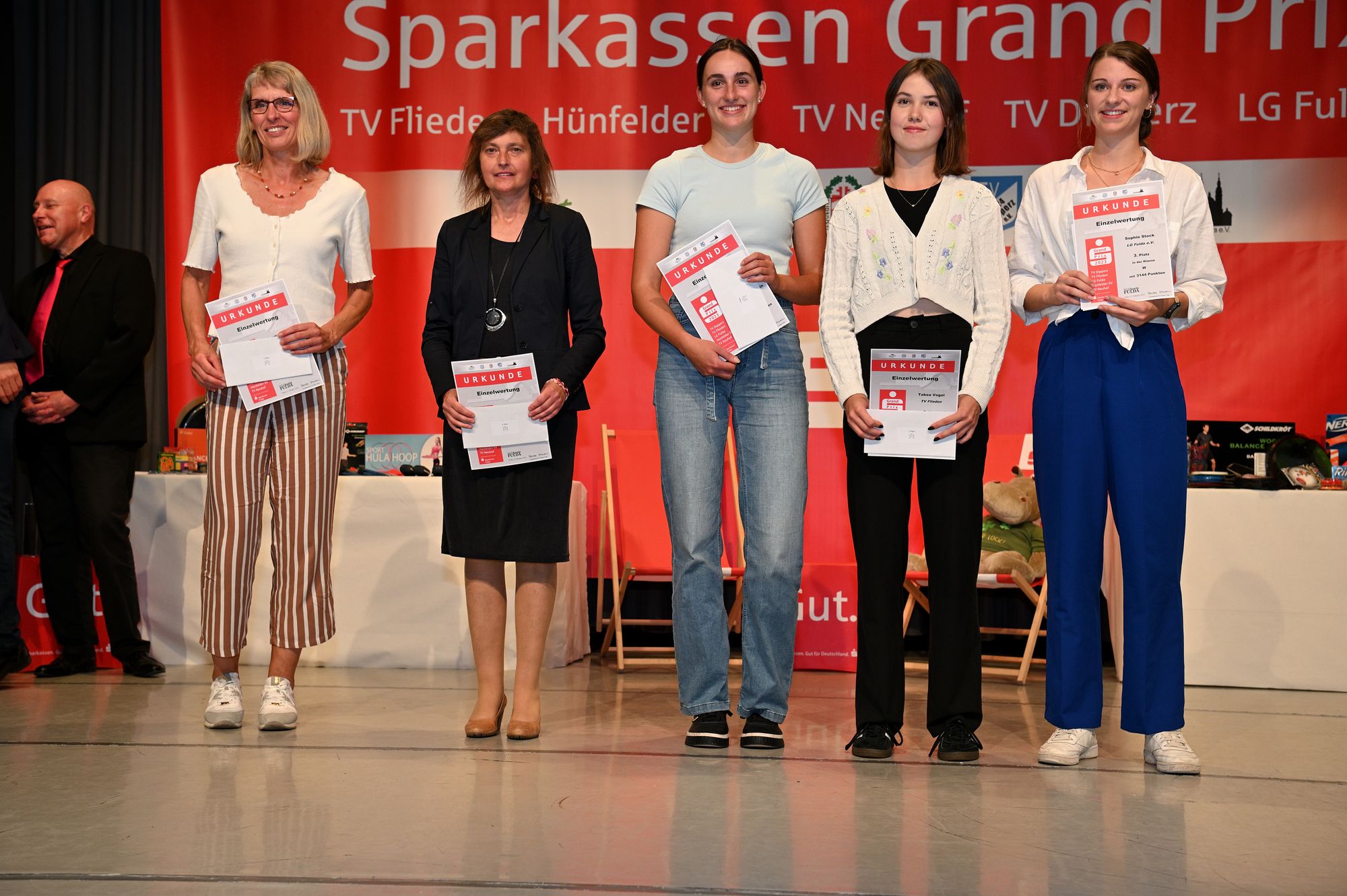Nach der Siegerehrung aller Altersklassen stand die der Teamwertung an. Seit 2016 heißt der Sieger TV Flieden und so war es auch in diesem Jahr. Gerhard Reichenauer nahm den Preis für den Verein entgegen. Auf den Plätzen zwei bis vier folgten der TV Neuhof, die LG Fulda und der Hünfelder SV. „Der TV Flieden ist der einzige Verein, der in allen Altersklassen vertreten ist. Das ist wirklich beeindruckend“, sagte Vogler. Im Anschluss stand die Verlosung des Hauptpreises unter allen Klassen-Siegern an. Am Ende konnte sich Gina-Marie Schmidt (Frauen) vom TSV Eintracht Stadtallendorf, über zwei Dauerkarten für die Deutschen Leichtathletikmeisterschaften in Braunschweig kommenden Sommer sowie einem „Taschengeld“ in Höhe von 250 Euro freuen. Für Unterhaltung sorgte der Auftritt vom zweimaligen „Künstler des Jahres“ TJ-Wheels. Mit seinem Showact „Rola Rola Show, James Bond Version“ sowie der „Spektakulären Rollschuh-Show“ zog er das Publikum in seinen Bann und erhielt für seine Showeinlagen jede Menge Applaus von den Besuchern.