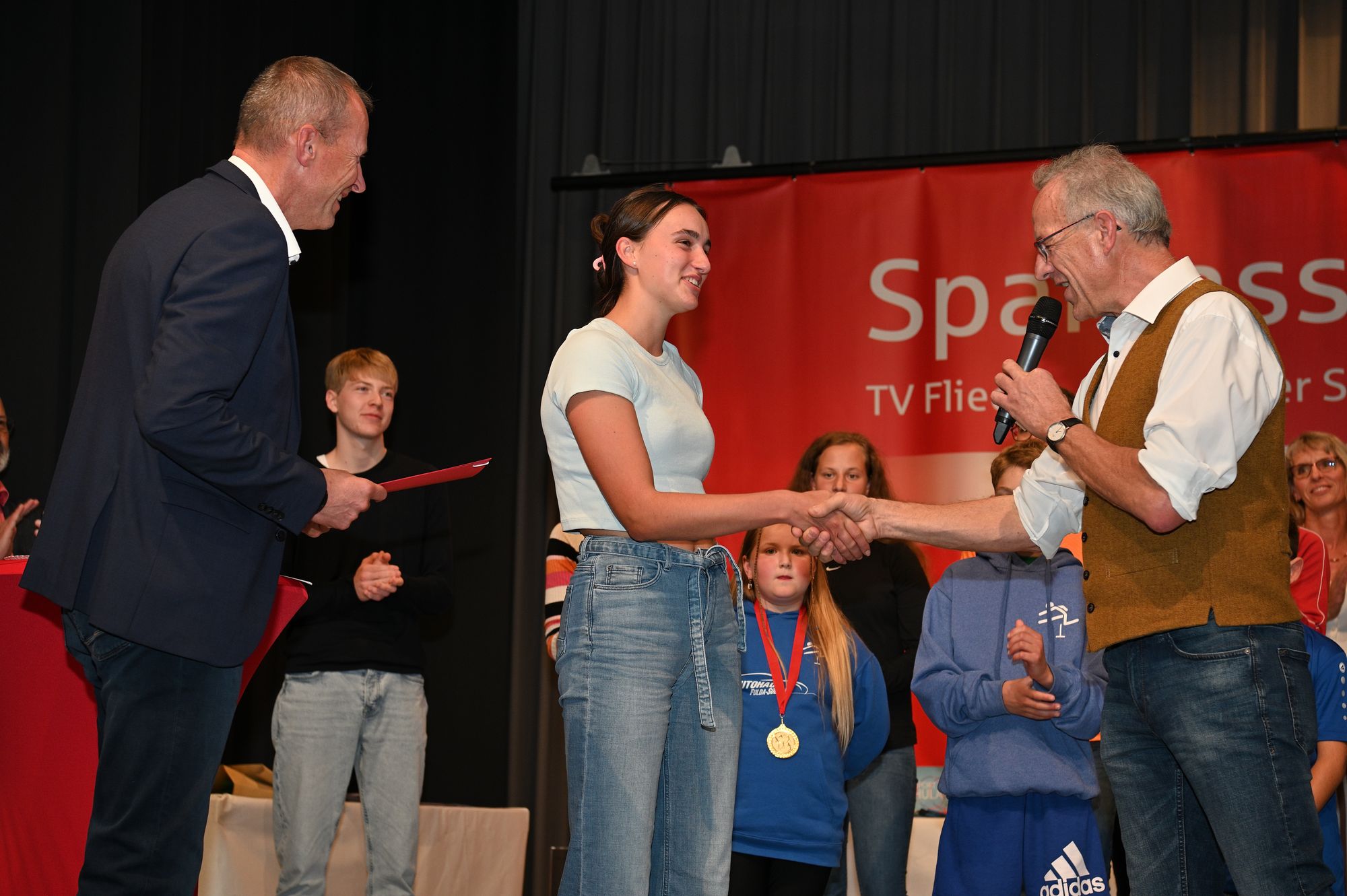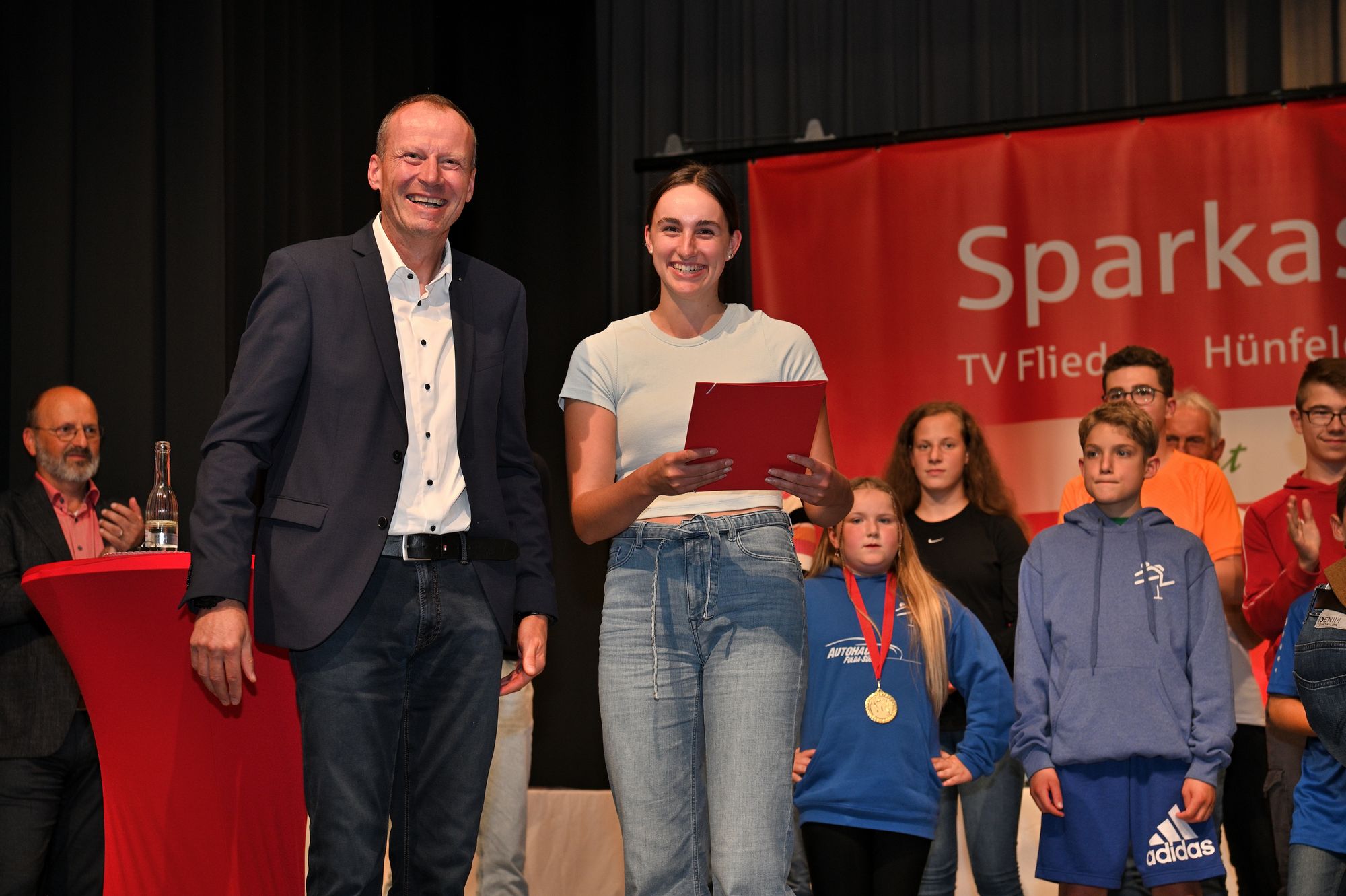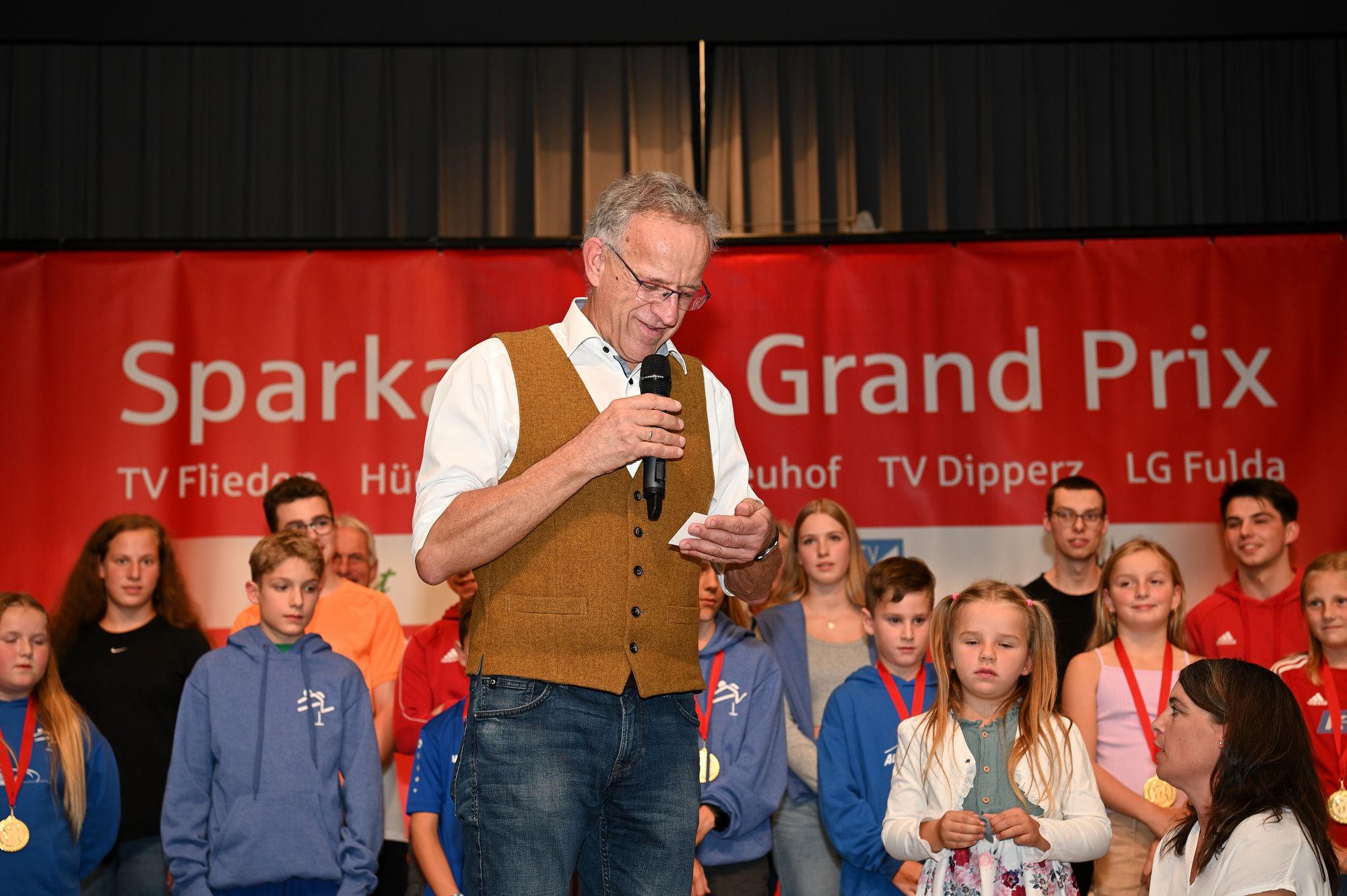 Klaus-Dieter Vogler, Dipperz Bürgermeister und langjähriger Vorsitzender des Leichtathletikkreises Fulda-Hünfeld, führte die Gäste durch die Siegerehrung. In seiner Rede dankte er allen Helfern für ihr Engagement während der Veranstaltungen und der Siegerehrung. „Wir stehen jedes Mal vor großen Herausforderungen und dank euch schaffen wir es jedes Mal wieder“, sagte Vogler. Insgesamt 580 Sportler haben an der Wettkampfserie teilgenommen – zum Vergleich: Im vergangenen Jahr waren es lediglich 510. „Wir bekommen jedes Jahr mehr Zuwachs“, freute sich Vogler. Holger Bickmeier, stellvertretender Vorsitzender des Leichtathletikkreises, freute sich ebenfalls über die Rekordteilnehmerzahl und dankt den Sponsoren für ihre Unterstützung. „So viele Sportler hatten wir noch nie im Kreis. Wir müssen uns nicht verstecken“, so Bickmeier.