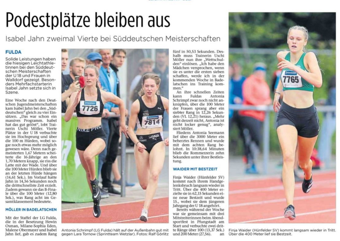 - 100m, Antonia Schrimpf, LG Fulda, 7.Platz, 12,26s